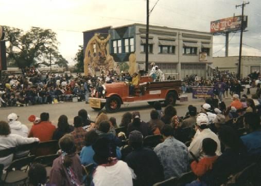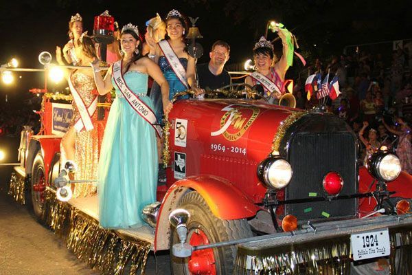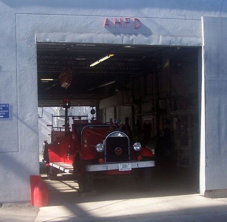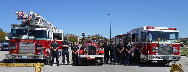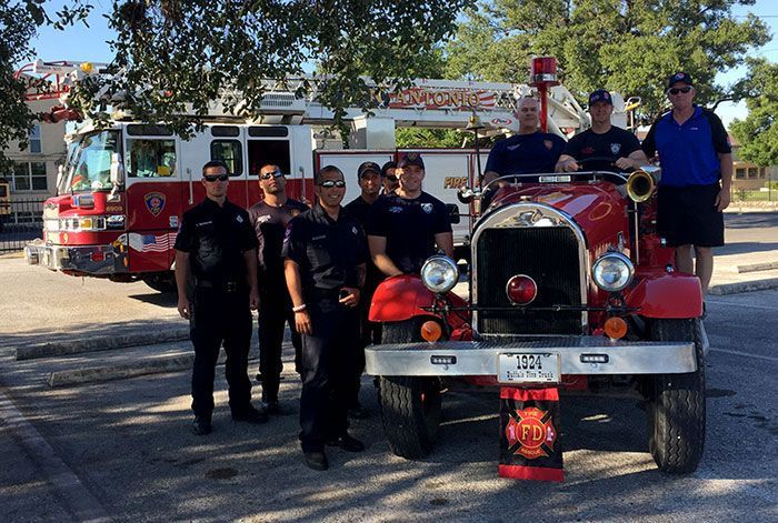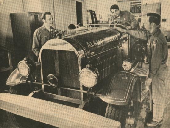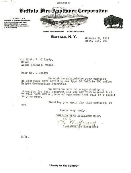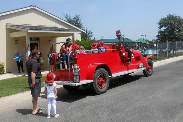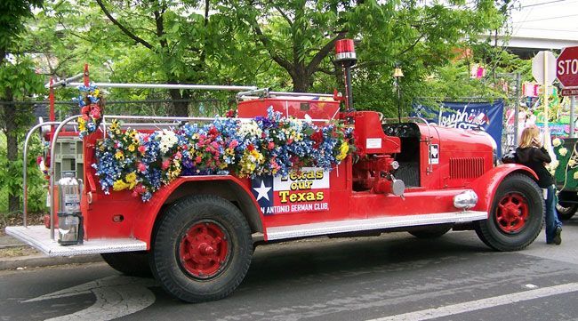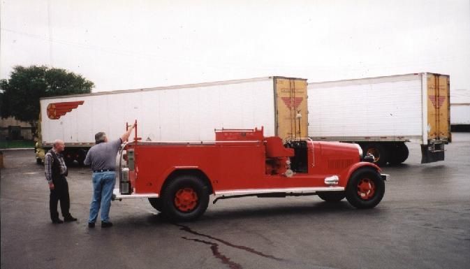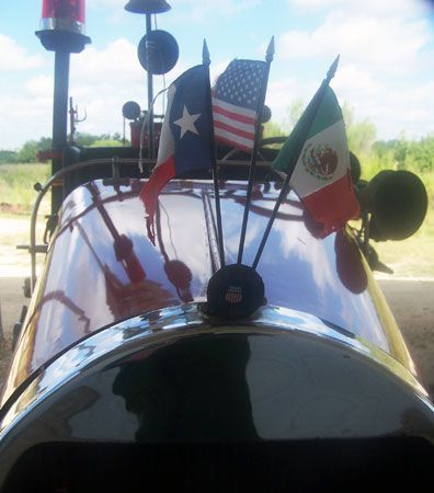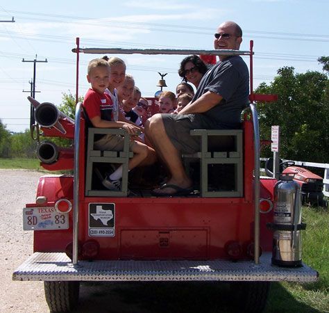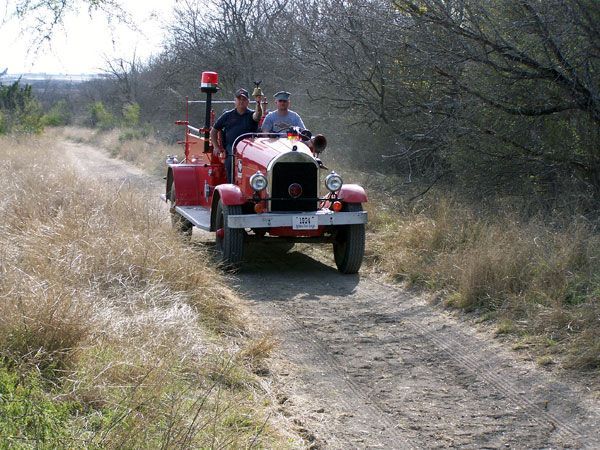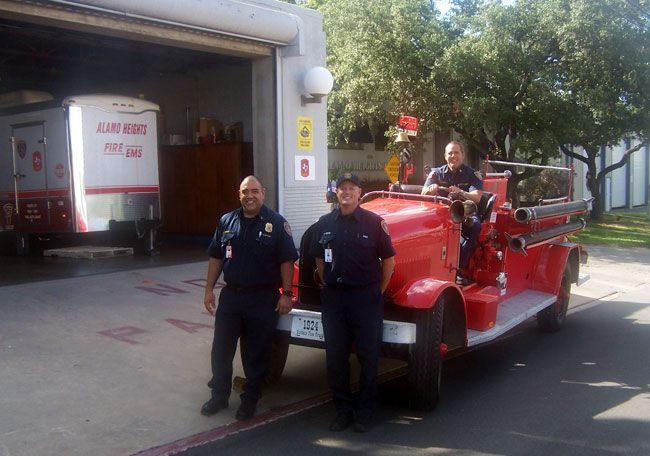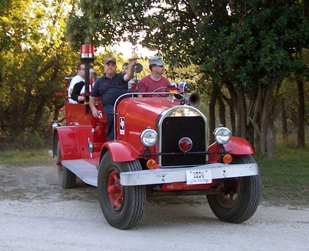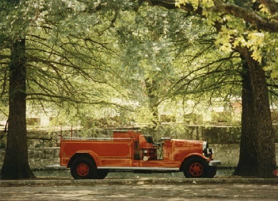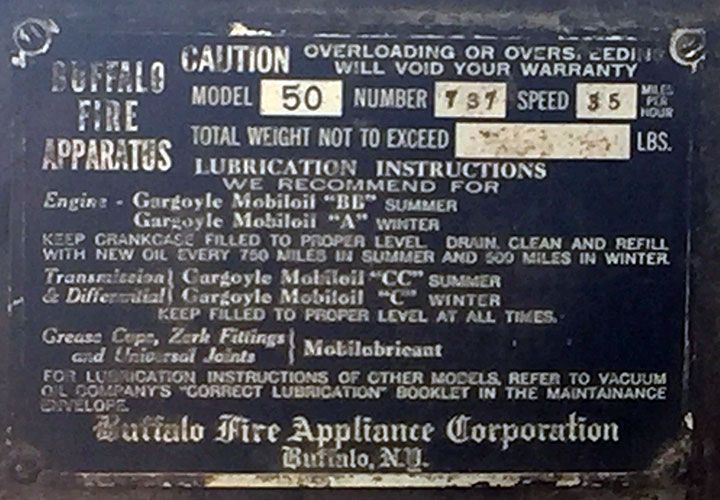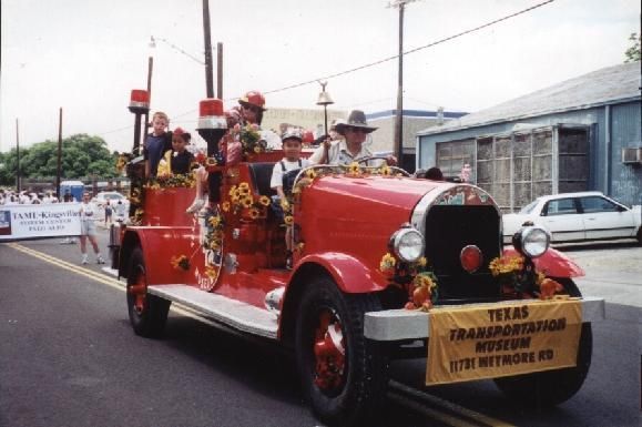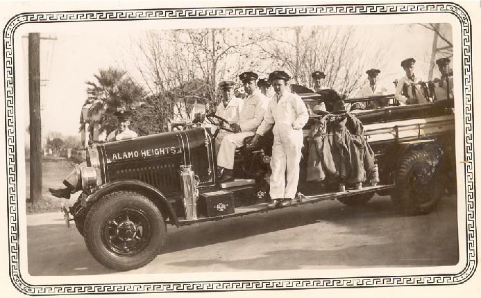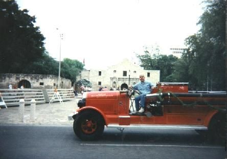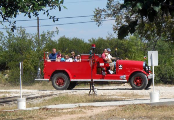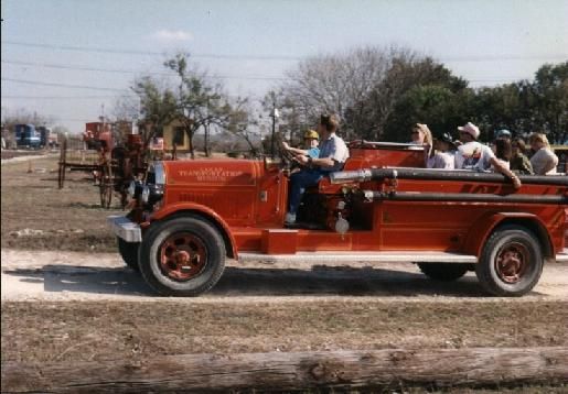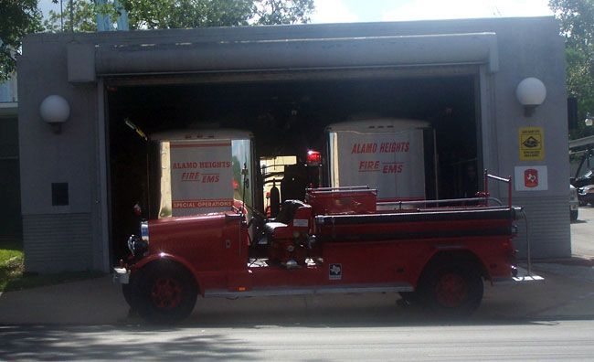 This is a a Type 50 1925 Buffalo fire truck with a main 500 gallon water tank and a 75 gallon booster tank. (It was mysteriously mis-labeled as a 1924 but original paperwork found by the Alamo Heights FD indicates it is a 1925.) It is one of the busiest and most popular items at the Texas Transportation Museum. We use it to give rides around our large property plus it is a regular in parades large and small across San Antonio. This fire fighting ladder truck was built by the Buffalo Fire Appliance Corporation of Buffalo, NY, which went out of business in 1931. It is based on a GMC truck chassis and may have had a GMC drive train originally but it now has an inline 6 cylinder continental engine. t chassis, it was purchased by the Alamo Heights Fire Department in late 1927 for $6,125.00, the equivalent of $76,221.81 in today's money. You might say the AFFD got their money's worth, however. It stayed in active service until the early 1970's when a Texas law was passed forbidding such ancient equipment. Fitted with an in line six cylinder engine, with four forward gears and reverse, almost certainly not it's original engine, it was donated to the museum not long after. While it has had any number of modifications over the years, including diamond plate steel bumpers, it still has its original two (rear) wheel mechanical brakes. It gets about 3 MPG. It also has its original "arm strong" unassisted steering, and a four speed manual transmission without synchromesh, which makes driving the old girl quite a workout.