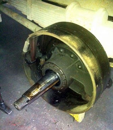 It became obvious during the 2011 parade season that the Buffalo's brakes needed attention. The vehicle only has brakes on its rear wheels, which are mechanically operated as opposed to hydraulic. A preliminary inspection suggested that oil had leaked from the axle into the brake drum on one side, effectively reducing the braking effort to just one wheel. Finding a place that would even consider taking on the project was daunting in itself. Our friends at SMT had a look but realized that the project had the potential to drag on almost indefinitely, hogging up one of their busy repair bays for an unacceptably long period of time. Fortunately, museum member Clint Bitterly found International Brake and Clutch in Kirby was willing to "git 'er done, and the vehicle was transferred to their facility in December 2011. The big problem turned out to be simply removing the hub from the axle. TTM chairman, Pat Halpin, finally set the guys at IB & C straight: "Don't force it. Use a bigger hammer." In other words, it took an inordinate amount of brute force to even get the hub to begin to move. Once the hubs were off, it was relatively plain sailing from then on. As often happens when vehicles are in the shop, a couple of "might-as-well" projects crept into the mix. It's quite likely the hubs had not been off the wheel in at least forty years. "Might-as-well" make sure everything, such as the bearings, were tip top, because it just might be another forty years before they come off again. Clint Bitterly drove the truck back to the museum at the beginning of March 2012. he has also volunteered to drive it in the upcoming "Battle of Flowers" parade. In the mean time, it's wonderful to able to give the public rides around the museum once more.