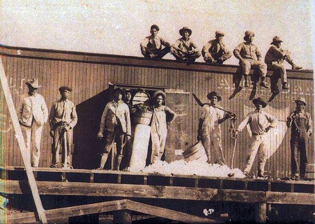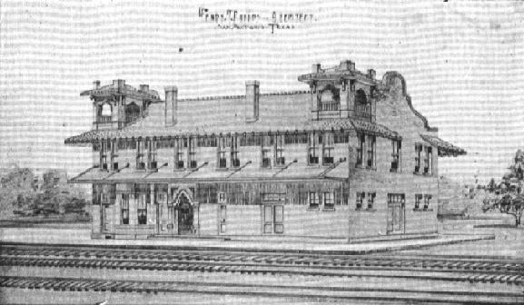 Almost all the financial backing for the new SAU & G came from Missouri. Naturally they wanted a man they knew and trusted. They chose A.J. (Abraham Russell) Ponder who had worked building and improving railroads and developing other forward looking businesses, including a long distance telephone company, in Missouri for over twenty years. Born in 1867, he had moved to Texas in 1908 to be build the Mexico, San Antonio & Gulf RR line between San Antonio and Corpus Christi and ultimately paid 25% of the resulting construction costs. With Ponder as company vice-president and general manager, the SAU & G hired Ernest Breaker, also of Missouri, to be the chief construction engineer. The company's headquarters moved from Crystal City to the new city of North Pleasanton. This led to the construction of an imposing two story building, both a passenger depot and company office, in "North Pleasanton." "Old" Pleasanton carried on as before. It got a railroad depot of its own, only one sixth of a mile from the much grander structure that graced North Pleasanton. The new town was heavily promoted by colonizers and one of their booklets, from 1913, has been reproduced and is available from the Longhorn Museum. The importance of Pleasanton was that it was here that the line united. To its north is San Antonio, to the west was Crystal City and to the south east is Corpus Christi. Thus the railroad was to service a huge and dynamic swathe of south Texas which, in 1912, was growing rapidly. The expanded line built maintenance shops in North Pleasanton and carried out the many activities needed to run the railroad.