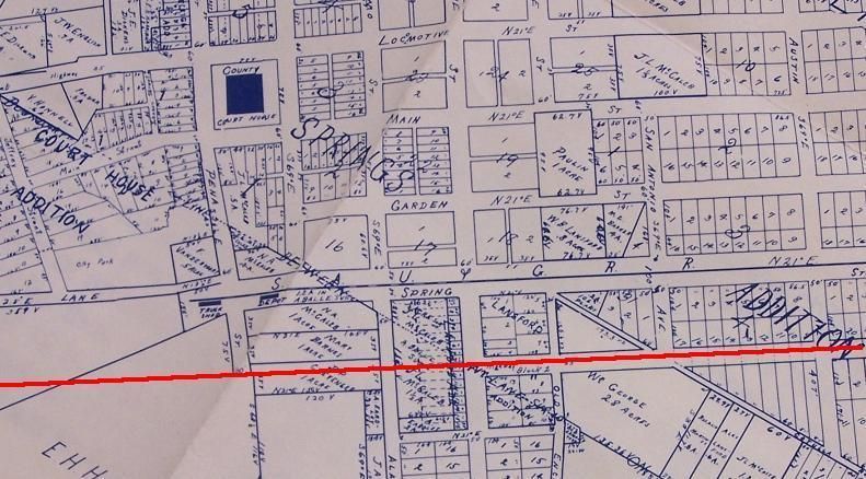 First and second Carrizo Springs railroad depots, a map showing depot location and abandoned railroad right of way today