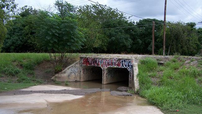 Not too much remains of the SAU & G yard in what was then North Pleasanton. A little further down towards the river on Commerce Street, on the other side of the road from the depot, is a small road that takes you to the golf course. There is a large foundation there that was once the railroad superintendent's offices. This building was later used by a fertilizer company, but that too is now gone. It was in this area that the railroad had its shops, its round house and other operations, like a dipping vat to treat railroad ties. The remains of the turntable, which is to say a large hole can also be found by the more adventurous.