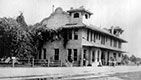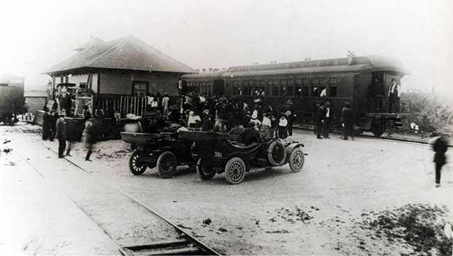 In 1912, hopes were very high at the S.A.U. & G.. On September 16, the first train from San Antonio pulled into Pleasanton. It had started out from the International and Great Northern Depot. The S.A.U. & G., which would soon be given the nickname of "The Sausage," used the I. & G.N. tracks within San Antonio. The train arrived to enormous fanfare at 9:15 AM. On November 19 the first train ran from San Antonio to Carrizo Springs. In 1913 construction of the handsome, two story depot was completed, with the upper level providing space for the railroads offices. On 2/28/1914 train service to Corpus Christi began and the railroad reached its zenith with total trackage of 320 miles. The town of Pleasanton, which had been platted in 1856, experienced a huge population growth. In 1912, only 450 people called it home. By 1914 it had risen to 1,500. The separate town of North Pleasanton was growing by leaps and bounds. (The two Pleasantons would coexist until 1961.) The smaller depot built to serve "original" Pleasanton has survived. It was donated to the city in 1986 by the Union Pacific and was moved, along with a UP caboose, to the Longhorn Museum on HWY 97, between the town and Interstate 37.