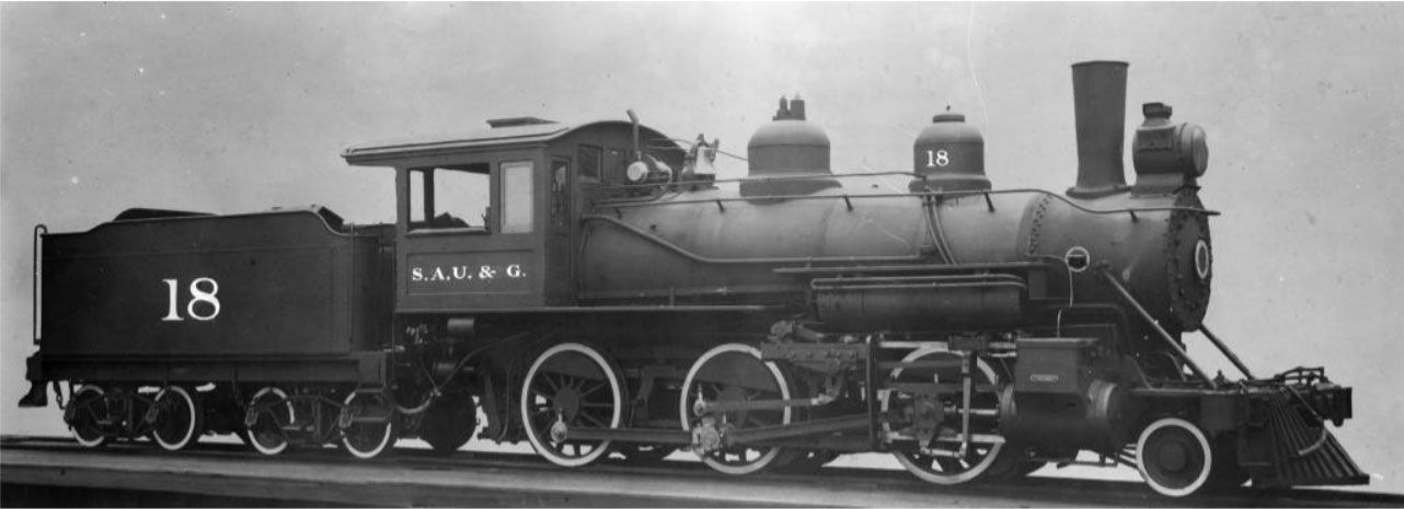 The San Antonio, Uvalde, and Gulf Railroad was a 320-mile system comprised of three sections. It ran first from Uvalde to Carrizo Springs. Then a line between Crystal City and Pleasanton was added. Finally, a line from San Antonio to Corpus Christi that ran through Pleasanton was added. The company began life in 1909 as the Crystal City & Uvalde Railroad. It was started by local entrepreneurs to serve a specific need. It became the San Antonio Uvalde and Gulf in 1912. It's independent existence was brief but significant. And, even after it was taken over by the Missouri Pacific conglomerate, its "original "flavor" survived to the extent that, even today, Union Pacific crews plying the route between San Antonio and Corpus Christi still refer to it as "The Sausage," which is the fond nickname the railroad acquired. In 1925, the S.A.U. & G. became part of the Missouri Pacific's "Gulf Coast Lines." The superiority of the route it used to reach Corpus Christi encouraged the Southern Pacific to downgrade its own line to the city, the older "San Antonio & Aransas Pass" route, to secondary status and to lease use on the "Sausage." While most of the line's original route, the line west of Pleasanton, was removed a long time ago, the remaining sections are in heavy use. The main line to Corpus Christi is still "Sausage".