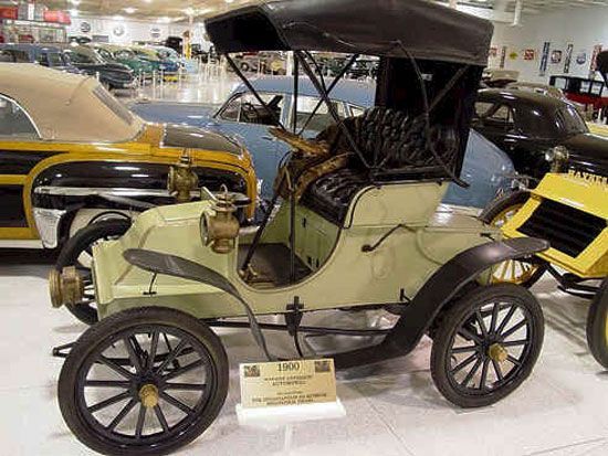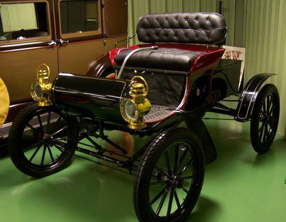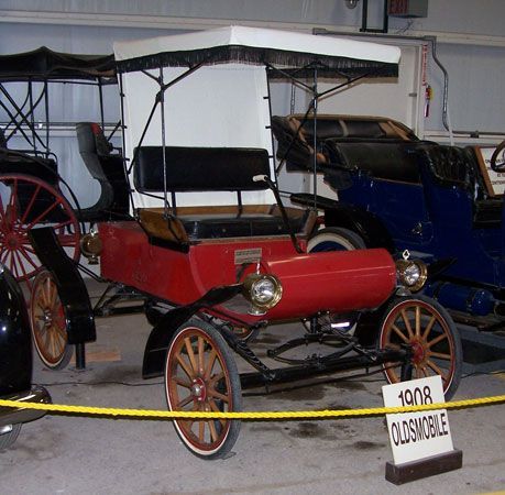 1st city automobile sale, a single cylinder Curved Dash Oldsmobile made at a bicycle store on Houston Street