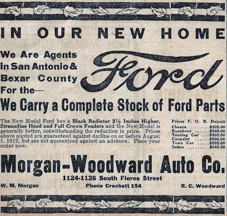 When Ford replaced its popular Model N with the T in 1908, the company opened a factory owned outlet in a building right behind the Alamo. With just two employees, they did finish work on new cars and serviced older models as well. The Ford Motor Company led the way with establishing an independent dealership network and, before long, the San Antonio outlet was sold to Clifton George. It was acquired by Gillespie in the late 1920s, in part to help with George’s debts incurred by the construction of the Medical Arts Building, now known as the Emily Morgan Hotel. Relocated ultimately to a location at Culebra on Loop 410, Gillespie was acquired by the Red McCombs Automotive Group in 2009.
