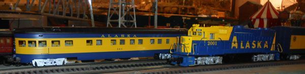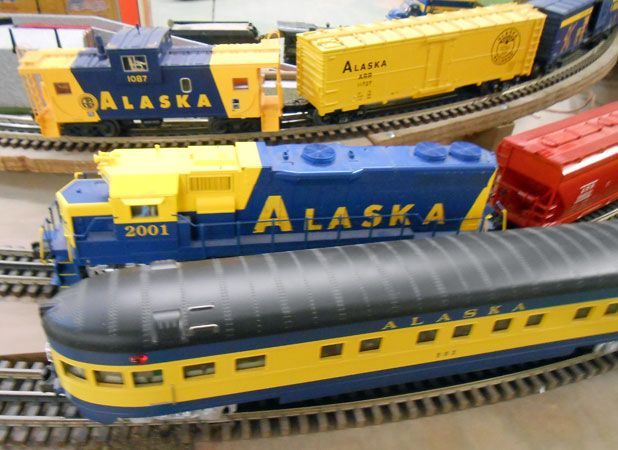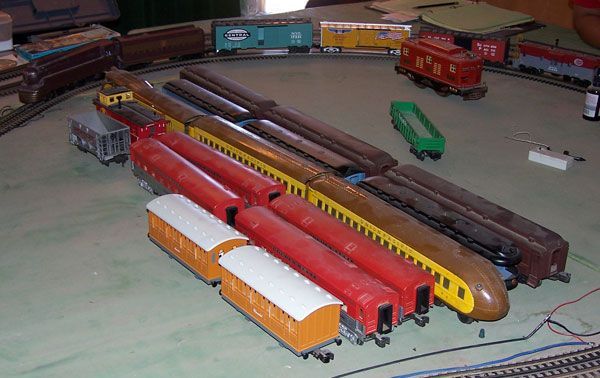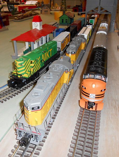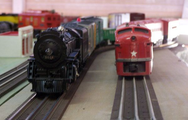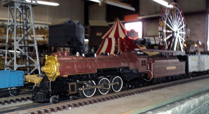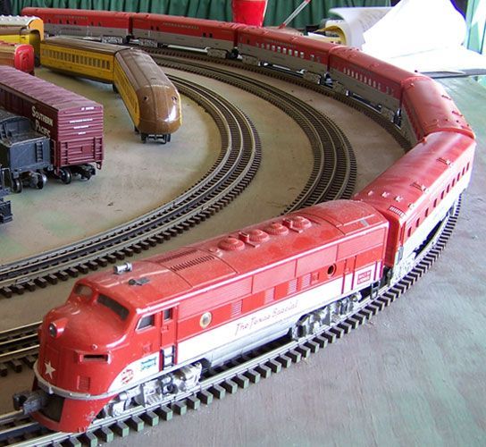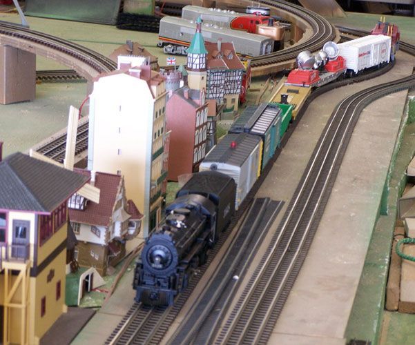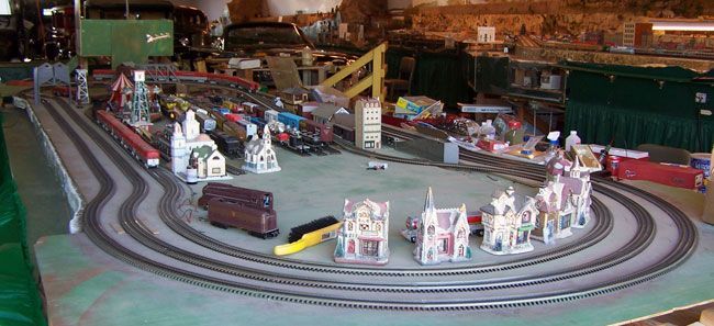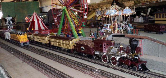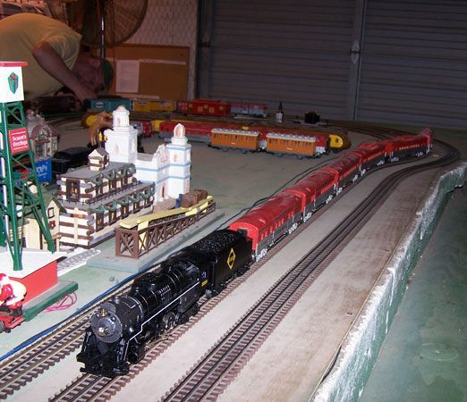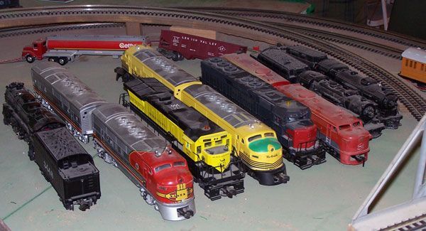 "O" gauge is the most light hearted and joyful of all the various forms of model railroading. Enthusiasts make a virtue of reliving the simpler days of childhood, staying in touch with that wide eyed wonder that kids have, when everything is new and exciting and fun. "O" gauge is often simply referred to as referred to as "Lionel," after Joshua Lionel Cohen, who founded the most famous of toy train companies in 1901, but there are several other manufacturers as well. It also sometimes gets called "Tin Plate" after an early type of train made in this gauge. Call it what you will, these layouts bring more happiness per square foot than any other type of railroad enthusiasm.