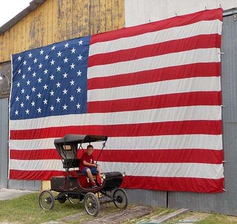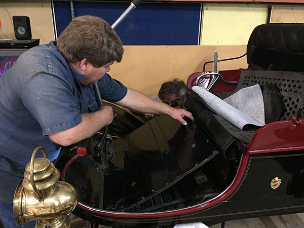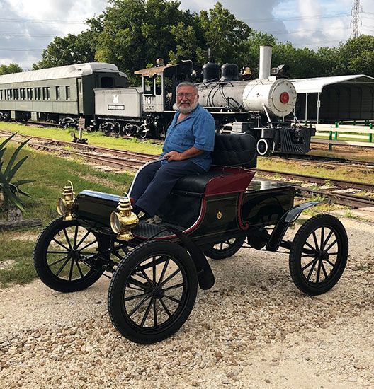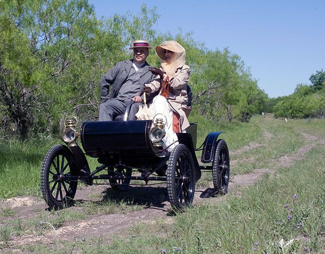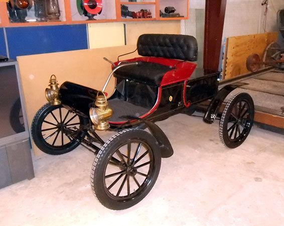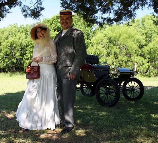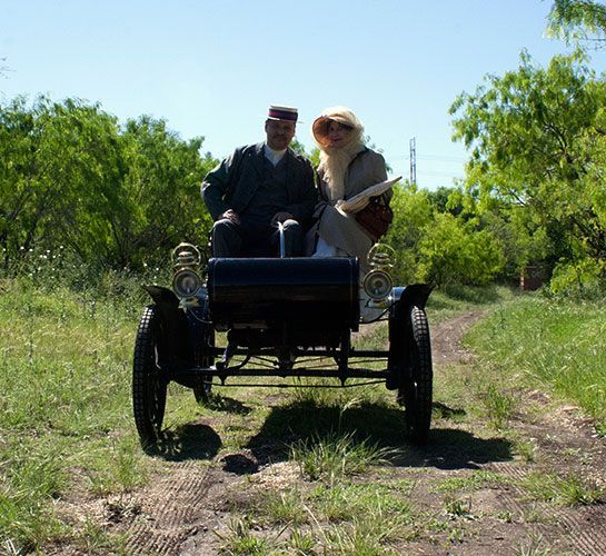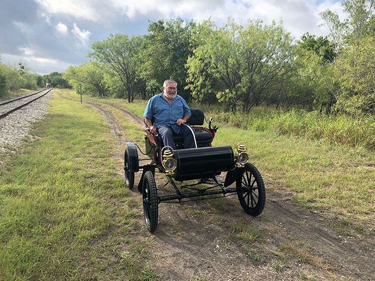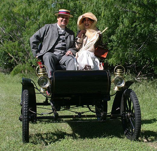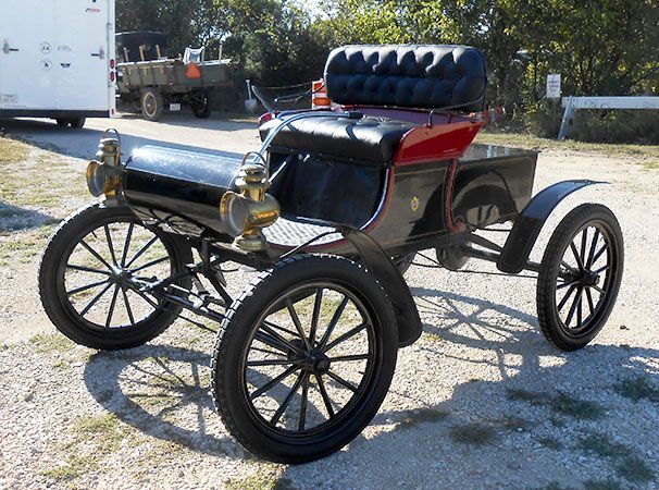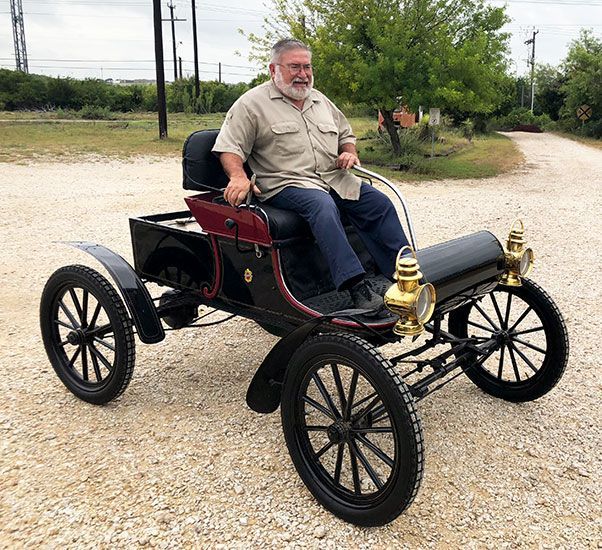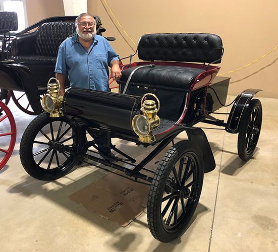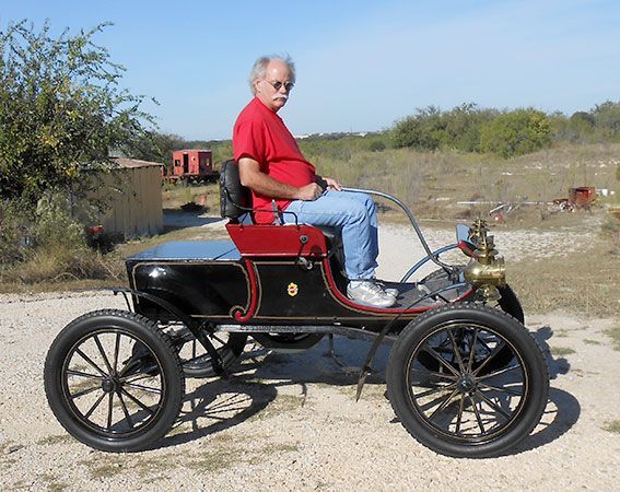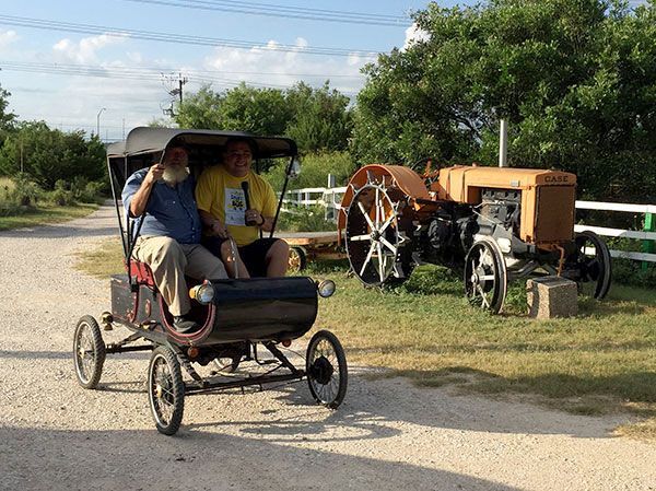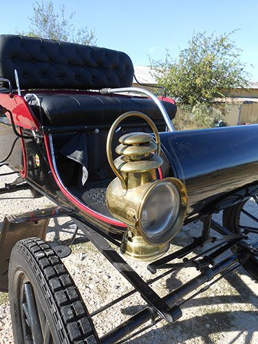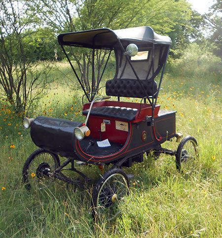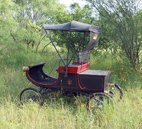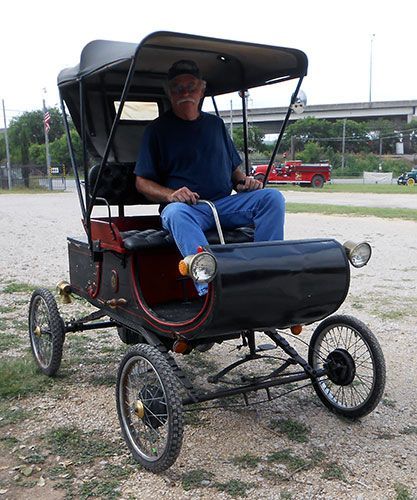 A mechanic who worked for the Cavender Automotive Group was so taken with the original Curved Dash Oldsmobile that he went home and built a replica in his spare time. It has a couple of improvements over the original, too, such as brakes on all four wheels, but that's what you'd expect from a mechanic who works for such a quality organization! It runs like a champ, too.