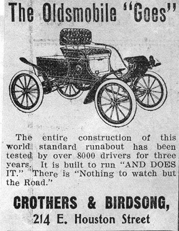This 1903 Curved Dash Oldsmobile has belonged to the Cavender Automotive Group since 1946. It was acquired to promote Cavender Oldsmobile, one of the oldest divisions of the Cavender Group, before the brand's demise in 2004. After that, it was placed in the very fine Central Texas Museum of Automotive History in Rosanky, Texas, before it too closed down. It is now, as of October 2015, on temporary display at the Texas Transportation Museum.
