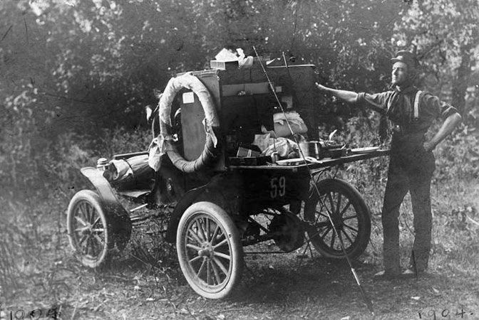 The Curved Dash Oldsmobile sold for $650 in 1903, the equivalent of around $16,000 today. The type was upgraded with a slightly more powerful 7-hp engine and a longer wheelbase in 1904, but sales began to fall as more modern vehicles emerged. In its early days, the Oldsmobile company ran masterful campaigns to popularize the vehicle. Initially, it simply stated that it was a great replacement for horses and mules. It soon became a staple in reliability runs on roads that destroyed its competitors. They were driven increasingly long distances, including a transcontinental run in 1903. The journey from San Francisco to New York took 60 days. It also did well in a race from New York to Portland, Oregon, the following year. One was driven up the steps of the Capitol building in Lansing, Michigan, with wooden blocks added to the rear wheels for traction. The vehicle was also celebrated in a very popular music hall song, "In My Merry Oldsmobile," which was a huge sheet music hit before the age of radios.