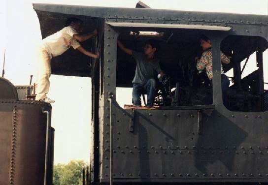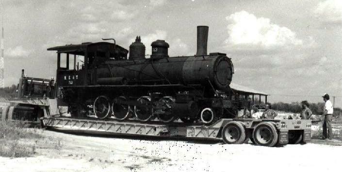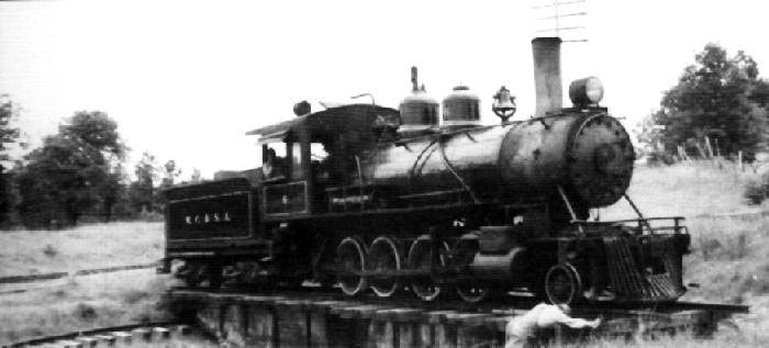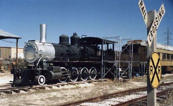 The locomotive was acquired from the US Plywood-Champion Paper Company, of Camden, East Texas, the latest incarnation of the long established paper and wood by-products company. The locomotive was the "best of the bunch" of quite a few old, abandoned locomotives in their possession. It weighs 55 tons and was last operated by the M C & SA RR in 1953. It has exceptionally low "chassis" miles for a steam locomotive - only 90,000. It's riveted boiler construction is illegal in Bexar County, following a catastrophic boiler explosion in 1925, so the whole boiler and ancillary arrangements would have to be re-made in order to make it run, legally, again.
