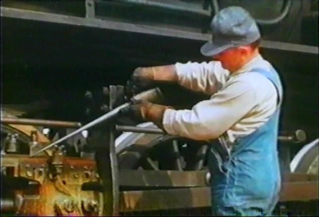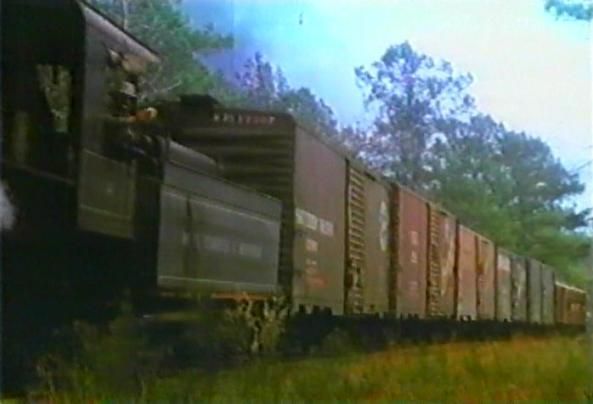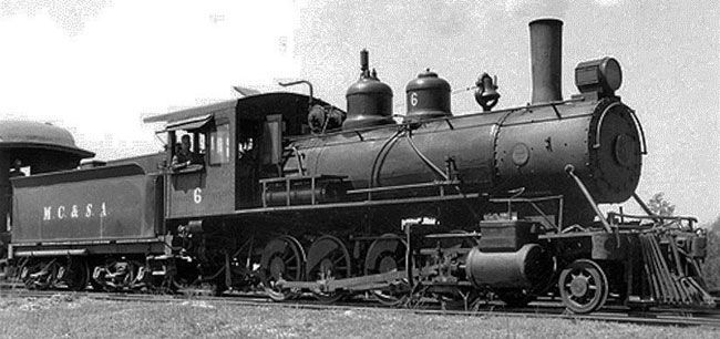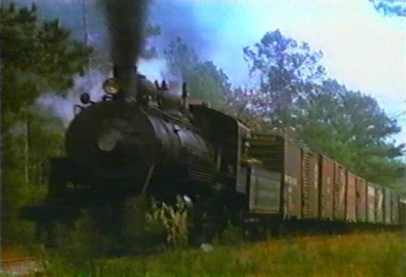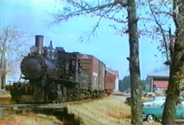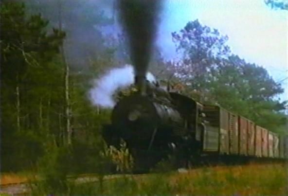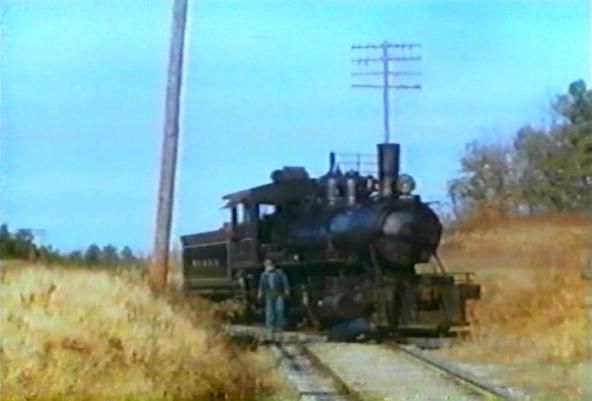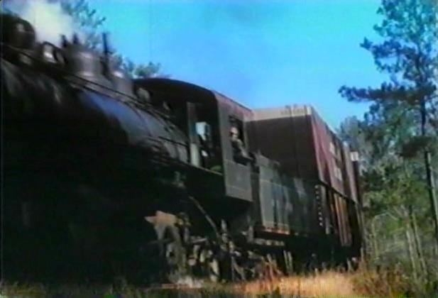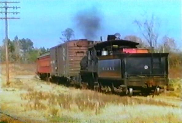 Locomotive #6 was built by the Baldwin Locomotive Company in 1910. It is a Consolidation class engine with a 2-8-0 wheel configuration. It was given its number by it's one previous owner, the C.W. Carter & Brothers Lumber Company. It was operated on the Moscow, Camden & St. Augustine railroad. The company changed ownership and name but #6 soldiered on. These captured images are from "American Steam, A Vanishing Era, Steam Shortlines of the South". It is still available on VCR for around $5.00 plus shipping. Use Google to find a vendor. The section of the DVD concerning #6 shows it in operation on the Moscow, Camden and St. Augustine Railroad in the 1960s, not long before it was retired from operations. You see the engineer greasing the side rods, and both crew members, the brakeman and the engineer turning the locomotive on a human powered turn table. The movie is a blend of several visits to the line, from summer to winter. On some occasions the train had a mixed freight consist, with a combination passenger and freight car at the rear. The movie commentary notes #6 was leaking steam from multiple places, a sure sign that its maintenance was poor at the end of its working life.