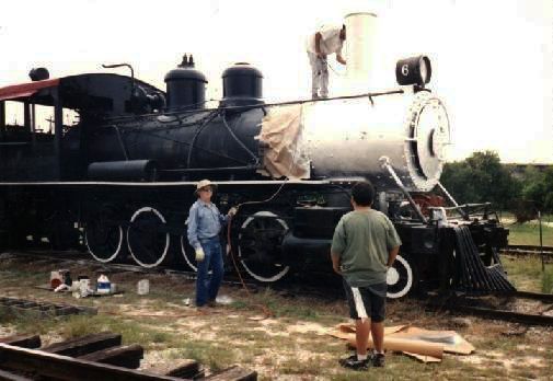 Though it was acquired by the museum as far back as 1971, #6 did not arrive at the museum until 1984. It spent the intervening years in Georgetown, Texas. The agreement, it seems was that the folks up there would rebuild the locomotive and many San Antonio volunteers trekked up to Georgetown to help out. The facilities in Georgetown were better than what was available at the still new museum. The plans are vague and lost in the mists of time, so suffice it to say that the folks up there did not do much with it, the agreement expired and the locomotive was returned to its owners, namely the museum.