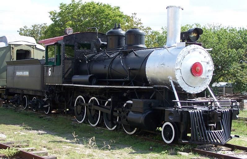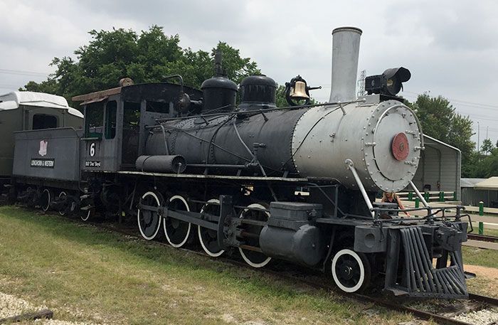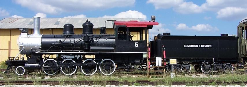 "#6" is a Baldwin 2-8-0 steam locomotive acquired new by the Moscow, Camden & San Augustine Railroad owned by the W.T. Carter & Brother company to to move fresh cut lumber in East Texas. The company was known to add a passenger car at the rear of the train during the summer to provide rides for locals and tourists. It cost fifty cents to travel the seven miles of the MC & SA. #6 stayed in operation until the mid 1950s. An enthusiast color movie - scroll down for captured images - shows it to be in very poor condition at the end of its service life. It was found, with other abandoned MC & SA steam locomotives, by museum volunteers in the early 1970s. Hopes that it could be returned to active service proved unfounded - its boiler and fire box are too far gone. It would require a frame-up restoration which would cost well over $10 million. But its second life as a static display is not without its value. It is seen and photographed by tens of thousands of people every year.