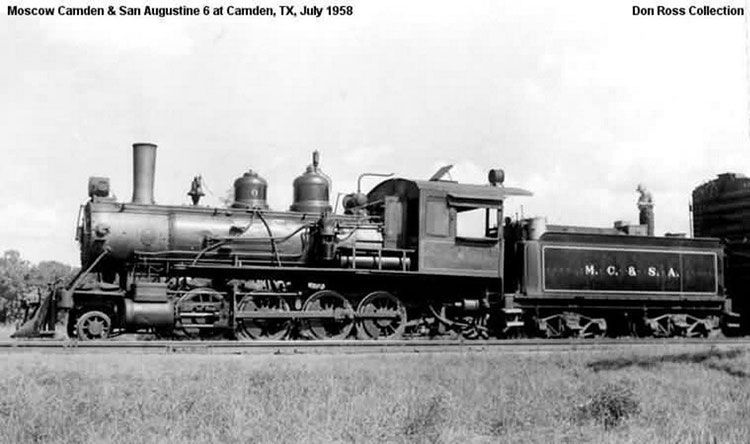 The towns of Moscow and Camden, being so small, are hard to find on most maps. They are 6.8 miles apart in Polk County, southwest of Lufkin, near to Livingstone, not too far from the Louisiana border. The railroad never actually made it to the town of St. Augustine. The railroad was wholly owned by the W.T. Carter & Brother Company, and existed to serve its logging operations out there in the lush red dirt woodlands. Southern Pacific had a depot in Moscow and freight would be transferred between the two railroads. Although the service was entirely a freight operation, a passenger car would be added for the benefit of tourists, and the revenue accruing from such sightseers. The M.C. & S.A. is still in business to this day, and it still offers limited passenger service, but, of course it uses diesel electrics now to power its trains.