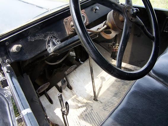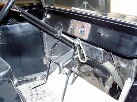 Other than that, this old truck is almost as stripped as the day it left the factory. Its only gauge is a voltmeter. There is no speedometer or fuel gauge. You check fuel by dipping a measuring stick into the tank located under the seats. It does not even have a dipstick. You check the oil by opening the valves under the cab. It does have factory-installed electric lights, a horn, and a starter. We have added a "motometer," or radiator cap-mounted engine temperature gauge, plus a period-correct rear view mirror and brake lights for safety. When it was new, it would have been possible to acquire an aftermarket set of side curtains to protect the occupants from the worst of the weather through the nonexistent side windows.