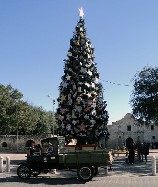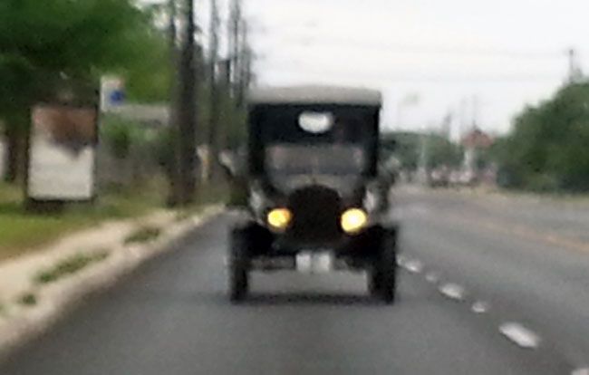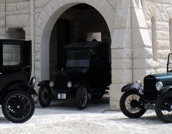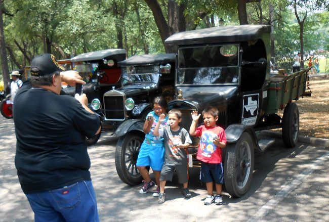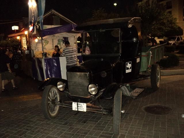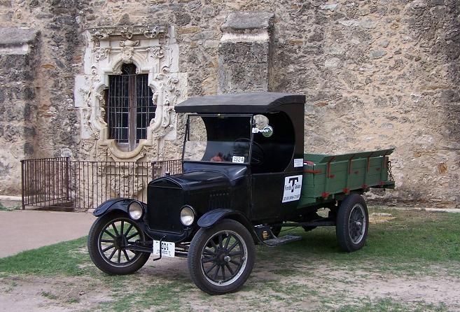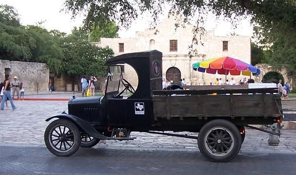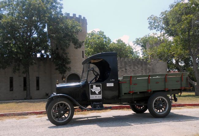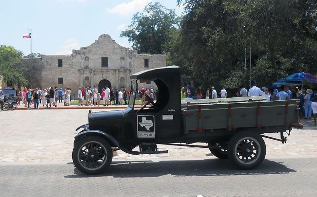 Finally, just in time for one of the biggest public events in the San Antonio calendar, the Folklife Festival at the Institute of Texan Cultures, held in the middle of June every year, our 1924 Ford Model TT was ready for prime time. Almost. The truck was unable to make it on the downtown cruise with other Model Ts during TTM's "Model Ts. @ TTM" show in May, though it was on display. Following that, the final work to make it ready was completed except for one important element: the tires. Their deteriorated state became unavoidable during a trial run around the block, a ten-mile jaunt that is quite taxing for old cars, with some long hills and plenty of traffic lights. An attempt to use some other Model T rims and tires failed as this truck uses an unusual size, but fortunately, in the nick of time, we found someone in town who had a pair of the correct front tires and a company willing to fit them. (The rear tires aren't good, but they had to suffice because none could be found in town.) Once fitted, and this is a short phrase for a lengthy process, the truck was taken out for another reliability run, and this time it ran even better. What a difference the new rubber made! So, we were off to the races. Or, more accurately, the Folklife Festival. The truck made the trip downtown pretty well and was seen by tens of thousands of people. However, it was on the trip back to the museum, past the Alamo, as light was falling virtually all the way up the hill, that the old TT really showed its mettle. The more this truck is driven, the better it seems to run. Also, the driver gains experience and can get better performance. The truck threw off its reserve and took those hills in stride. Now we can't wait for its next adventure.