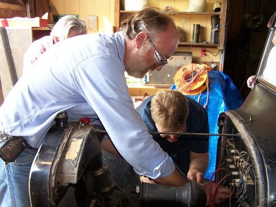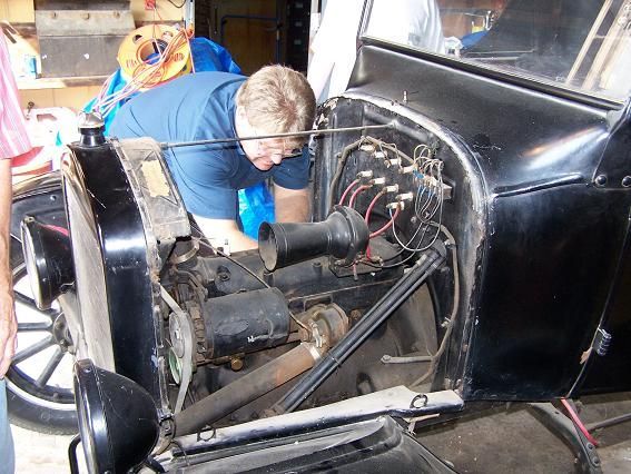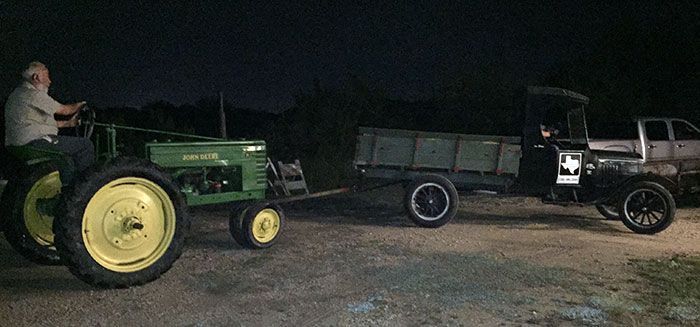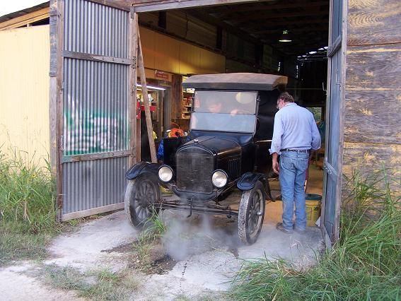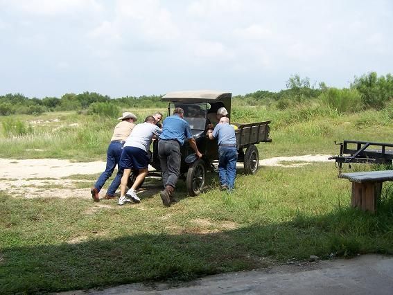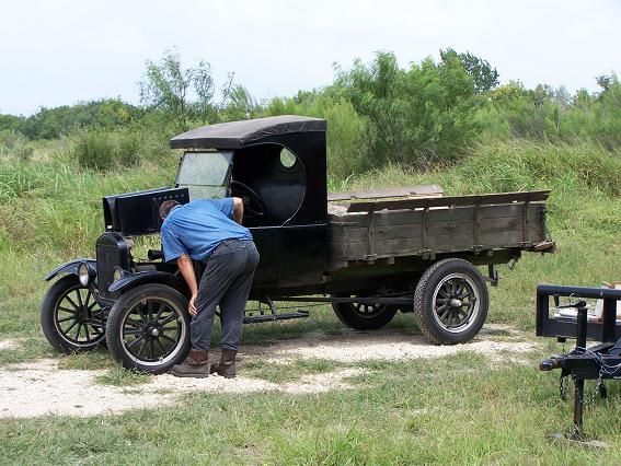 On September 22, 2007, Daniel and Mike of the "Ford T's of Texas" swung by in a 1926 Ford Model T light pick-up and a 1926 Ford Model T open sedan with the intent of getting the museum's 1924 Ford Model TT truck running again. They removed the incorrect Ford Model A carburetor and modified inlet manifold and replaced them with proper Model T parts. They replaced the spark plugs and wires. They cleaned some light corrosion from some electrical parts, drained the oil, and performed some other light but important tasks. They drained out the old oil, put water in the radiator, some gas in the tank, and installed a battery, and lo and behold, the old truck fired on the first stomp of the starter button and started on the second attempt. After tinkering some more, it was decided to see if the truck's transmission was capable of moving the truck. One thing led to another, and even though the carburetor was not properly hooked up and the brakes were questionable at best, before you knew it, the truck was out on the museum's grounds, moving under its own power. Though much more work needed to be done, everyone involved was pretty elated at the level of success on the first day.