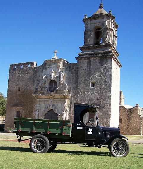 After sitting idle for almost thirty years, it was to be expected that the vehicle would experience technical difficulties. These were so capricious that they earned the name "Diva" for their ability to run perfectly well in private but to act up once they were about to be in public. Nonetheless, as you can see in the pictures below, it has become one of the most frequently used vehicles at the museum. It took part in its first parade in the St. Patrick's Day celebrations in March 2009. It then took part in the downtown cruise past the Alamo during the 2009 San Antonio Ford Model T show, which has become an annual fixture in the museum's calendar. With its bed repainted in its original colors, it has been driven as far as La Verania and Floresville for parades and car shows. It has been driven around San Antonio's historic missions and taken by trailer for a movie shoot in Asherton, Texas. Watch this space for more pictures of its latest exploits.