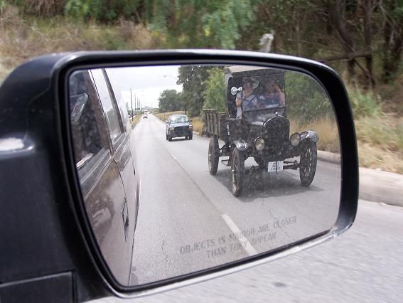 In early June 2008, after far more work and expense than anyone anticipated, the vehicle finally made its debut on the public roads of San Antonio and drove like a thoroughbred champion! With its Ruckstell rear end in "high," the old truck is only capable of going around 20 MPH. Since September 2007, it has been in and out of the shop for a whole host of necessary repairs. The source of the horrible noise coming from the engine was found to be a metric thread nut that somehow made its way into the oil pan. It came loose from the sediment after the engine warmed up. The front end was stripped as well. Removing some of the bearings was a feat in and of itself because apparently the last person to touch them was the factory employee who fitted them in 1924. The last piece of the puzzle was the electrical system. The engine might run, but not very well. Museum members Tony and Hugh took everything out to check and clean all the contacts and troubleshoot the system. Once everything was hooked back up, the engine sounded great. Now the truck can go to high gear without stalling. The biggest kick was when the Ruckstell was put into high gear and everything still worked. And it was found that this old T can scoot right along!