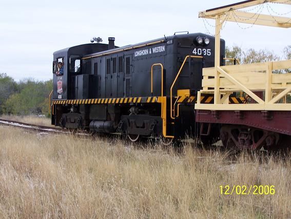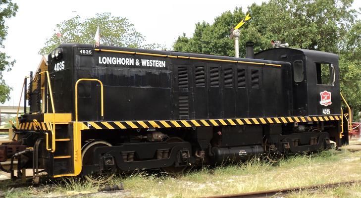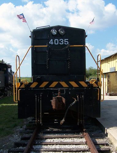 The 4035 is the work horse of the Longhorn & Western Railroad at the Texas Transportation Museum. Following its purcahse from military surplus in 1995, it has carried around 250,000 passengers, quite a change from its days hauling fuel, munitions and other supplies for the army. While it is not the most glamorous of locomotives, switchers like these perform a vital role for railroads every day, helping to build those mile and a half long trains to be seen on the Union Pacific's mainline just across the road from the museum. We have maintained its original army paint scheme. In honor of one of the museum's hardest working volunteers, a retired Southern Pacific engineers, we named it the B.P. Budd, for Pat Budd, who contributed so much to the development of the Longhorn & Western RR.