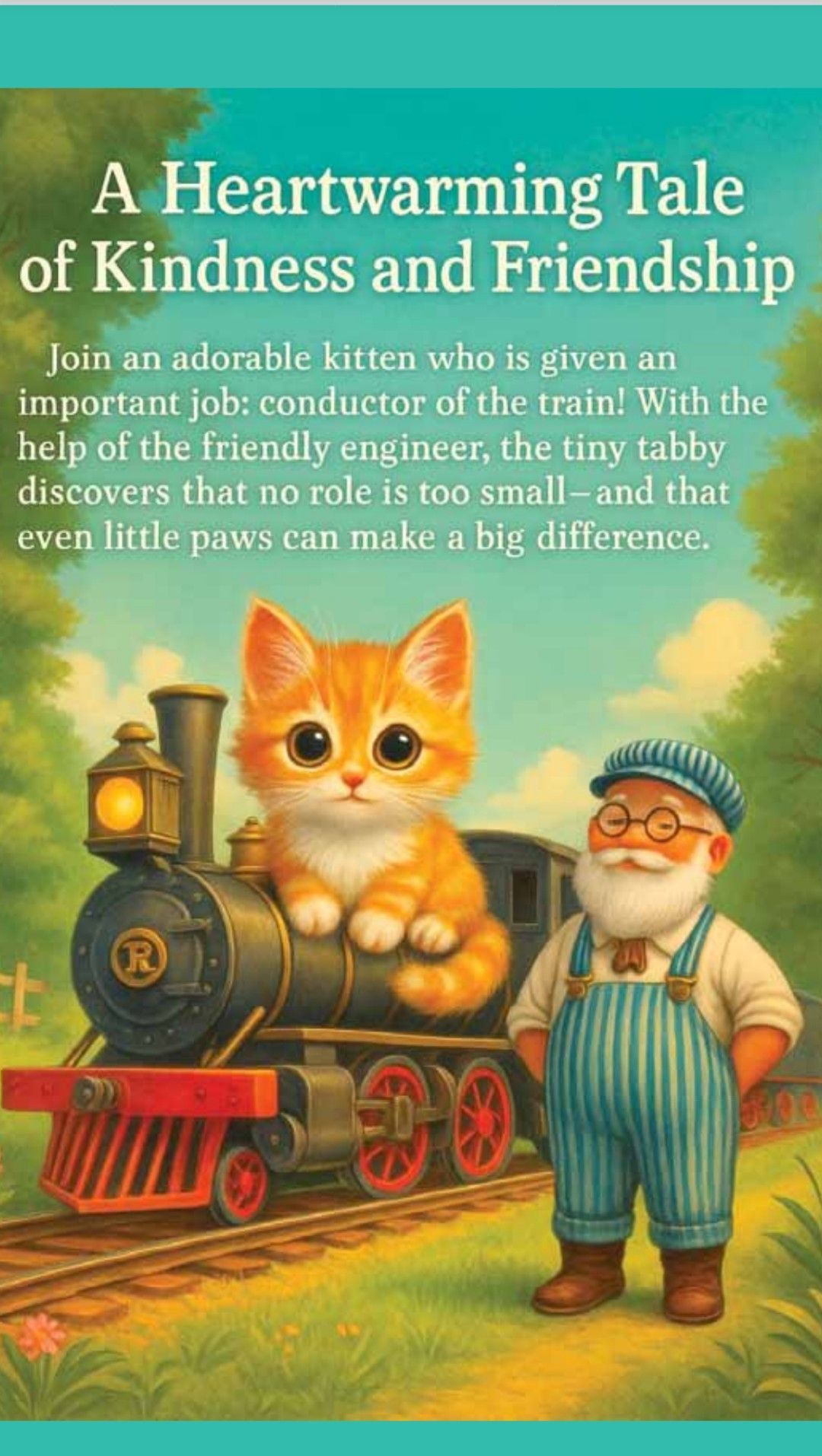 There was a long standing family of cats that called the park home. Giving Julia the spark of inspiration, how could a little kitten help the kind engineer and be guide to all the children of the park.