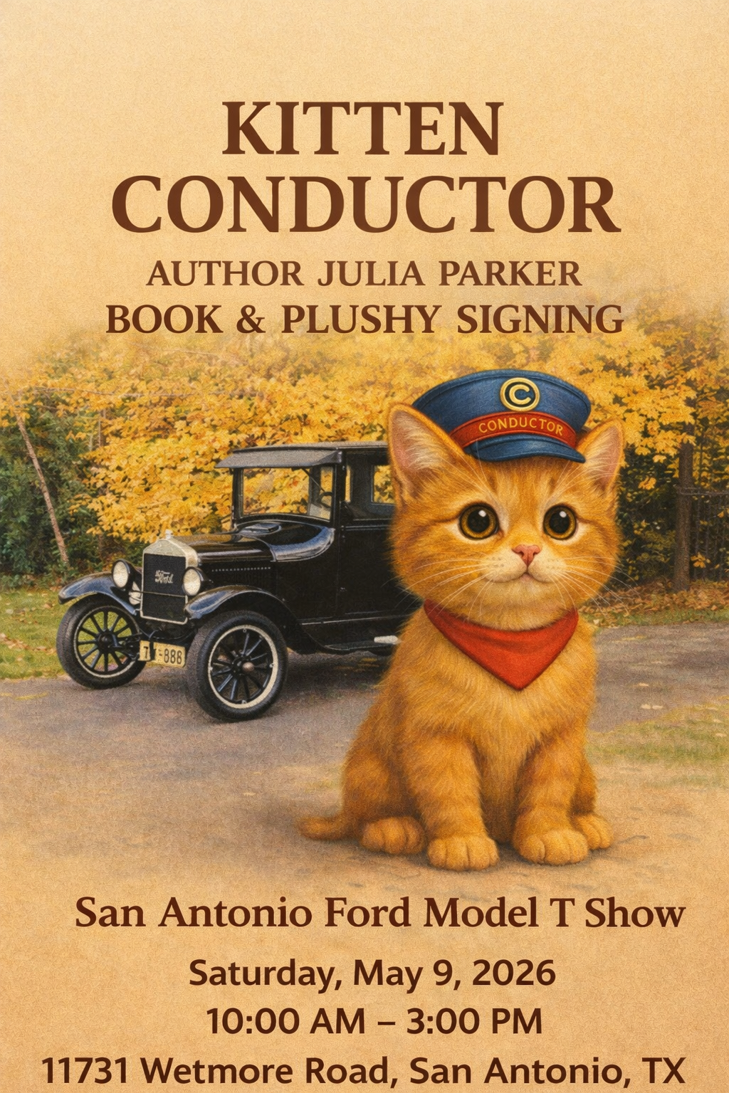 for a book signing during the San Antonio Ford Model T show on Saturday 9th May 2026