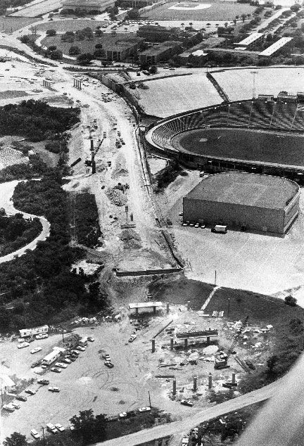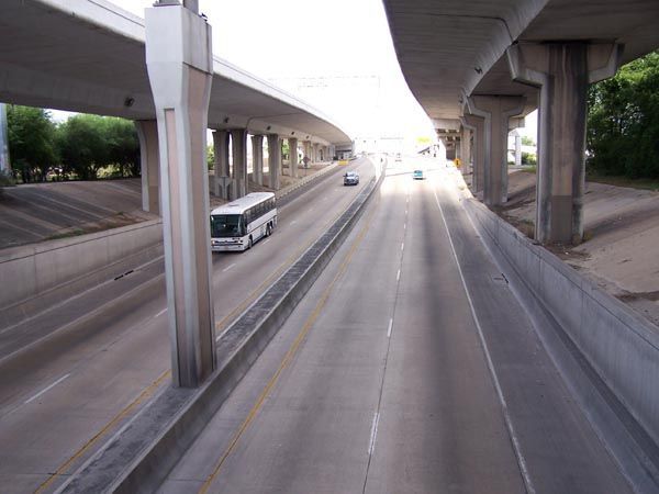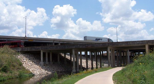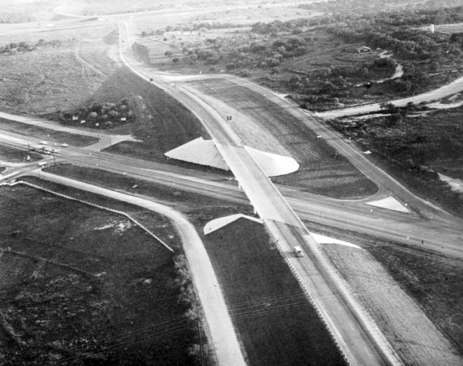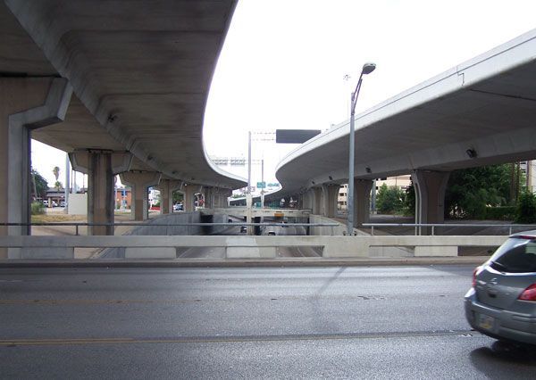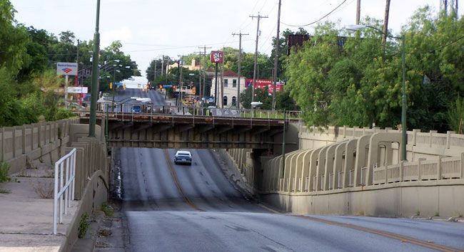Following a national trend, the easy passage given to earlier projects, such as IH 35, which was allowed to cut through well established communities on the east side almost without comment, came to a screeching halt in the 1970s when plans for an extension of IH 37 from Corpus Christi to the International Airport and on towards Blanco was proposed. The initial route proposed by the Department of Transportation involved going through a small section of the south eastern corner of Olmos Park. The small city categorically denied permission, fearing both a loss of property values and a repetition of the bisection of Balcones Heights by IH 10. The second route was even less popular, as it involved going through the major green belt reserve in the Olmos Basin. As in other cities across the country, from New Orleans to Portland and, most famously, Boston, where halted projects are still called roads to nowhere, environmentalists and conservationists joined forced to stop the erosion of city parklands.