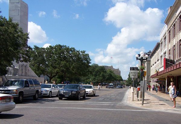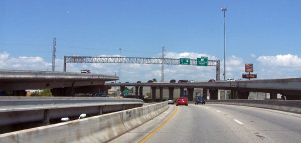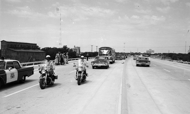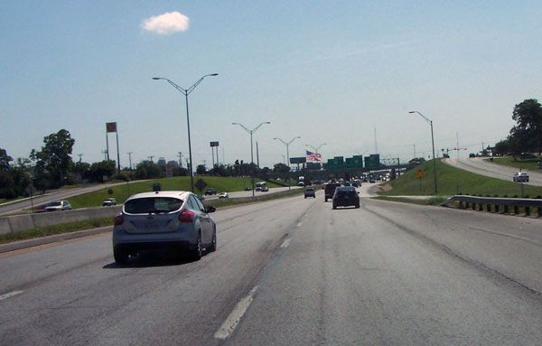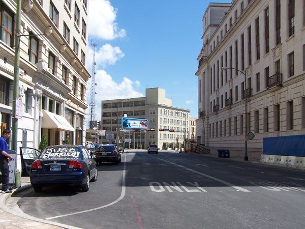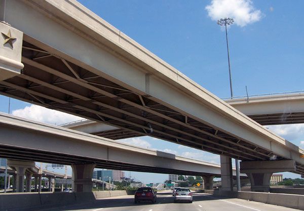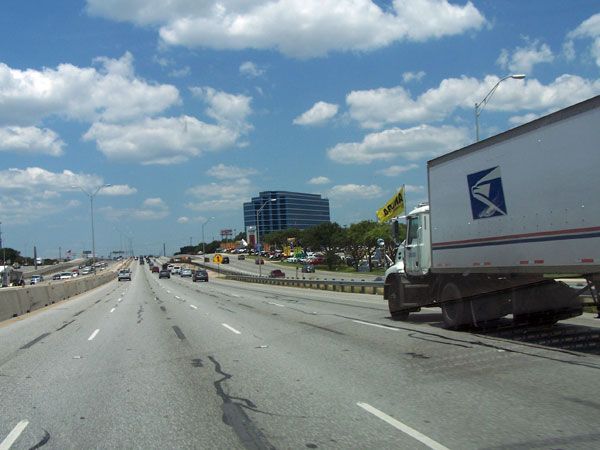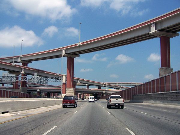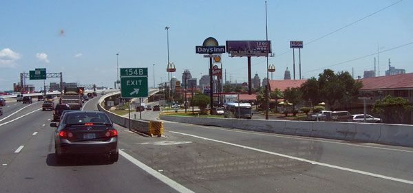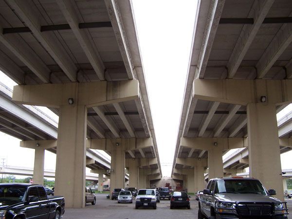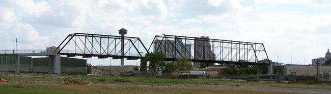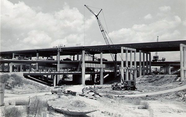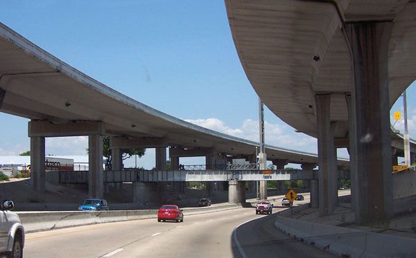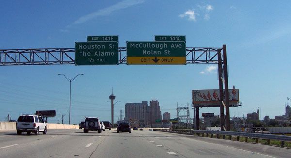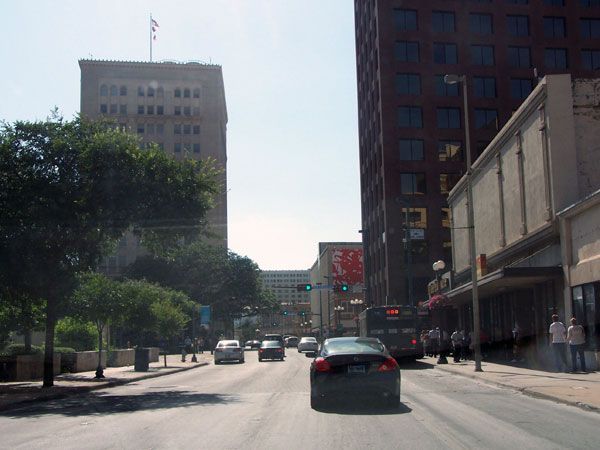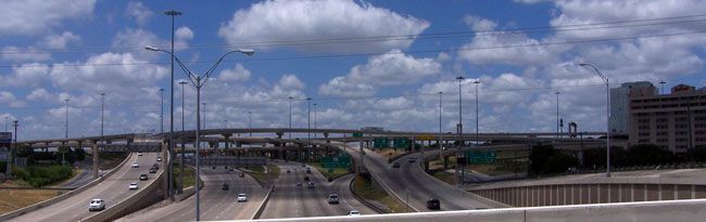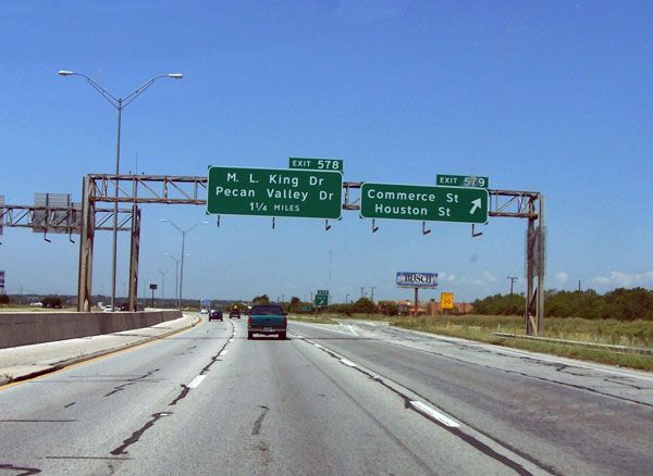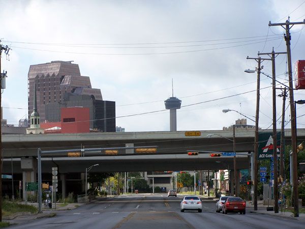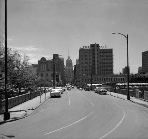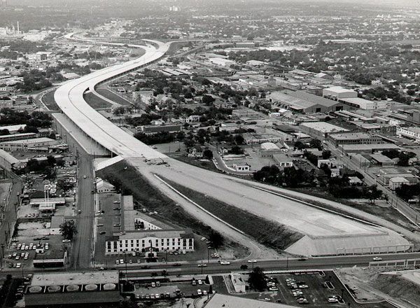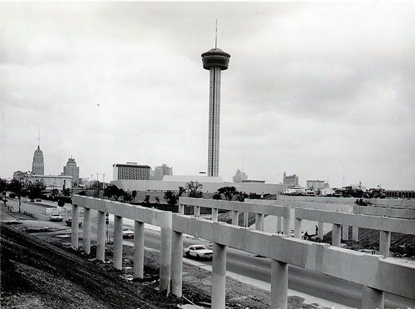 In San Antonio the charge was lead by the San Antonio Conservation Society, an organization with a long track record of resisting the depredations of the automobile age upon our historic city. It had successfully resisted the construction of parking structures under city parks and other schemes it deemed, at best, short sighted, but the ten year fight to protect the Omos Basin green belt would eventually prove unwinnable. Too many powerful forces were arrayed against them. The legal framework of the argument aginst the proejct rested on a provision within the national road construction statutes that forbade the use of parklands for federally funded expressways. However both Texan US Senators, Republican John Tower and Democrat Lloyd Bentsen, successfully passed legislation in 1973 that discontinued federal involvement in the project, which allowed the city and state to go it alone. This is why IH 37 technically ends at the intersection of IH 35 and the road continues as Texas Highway 281 even though it meets all the criteria of interstate highway construction.