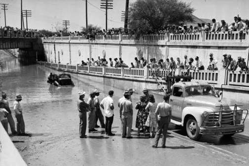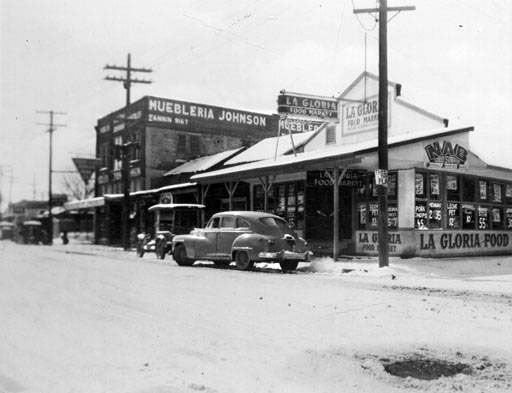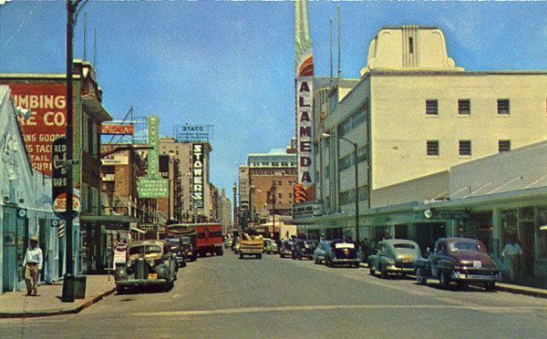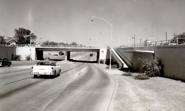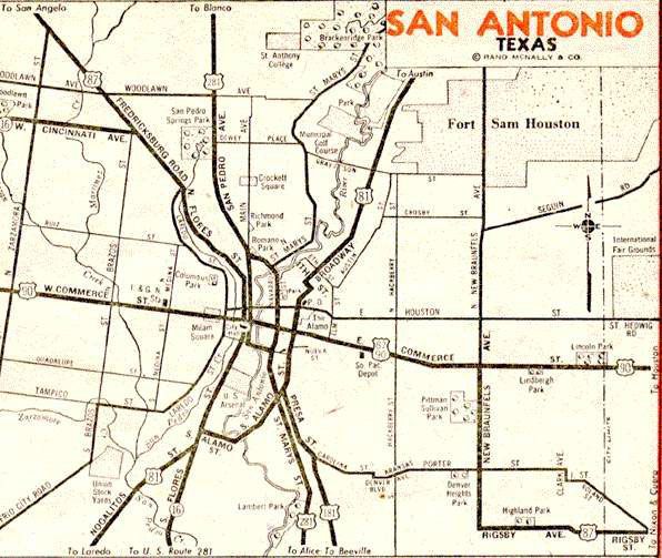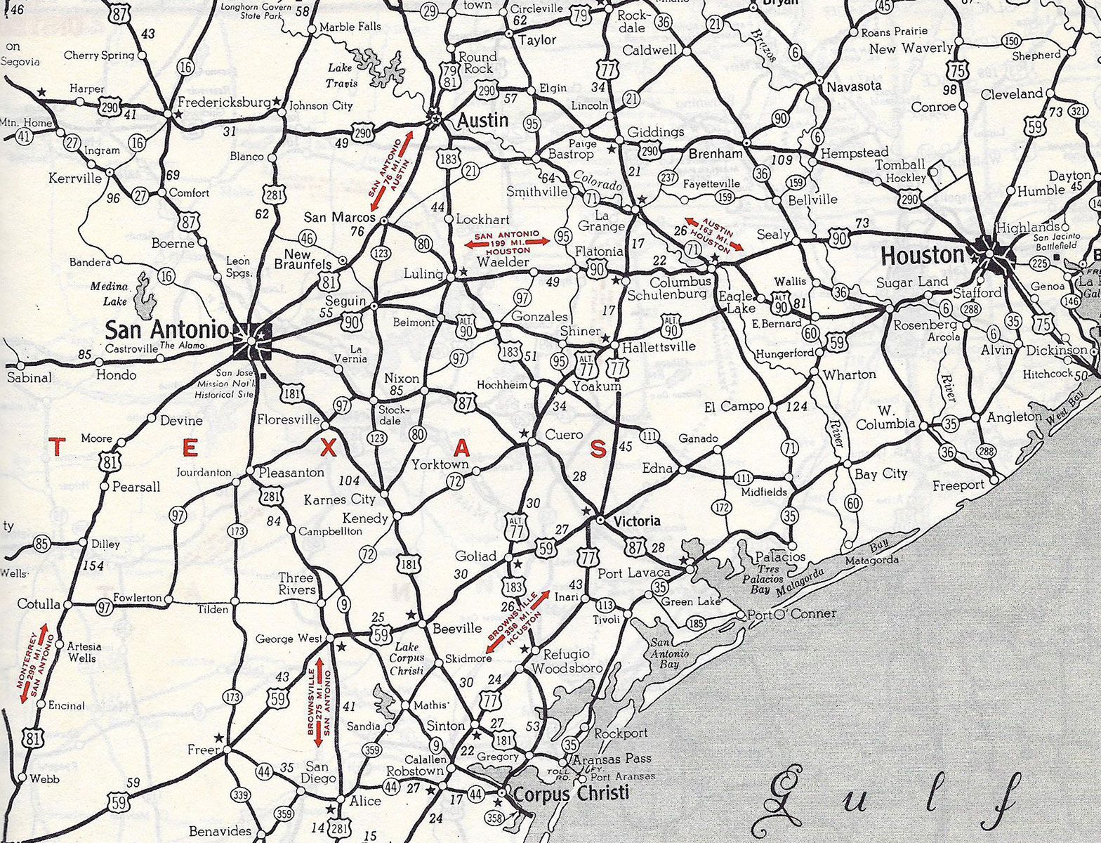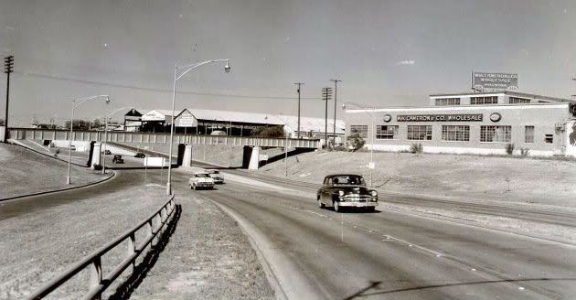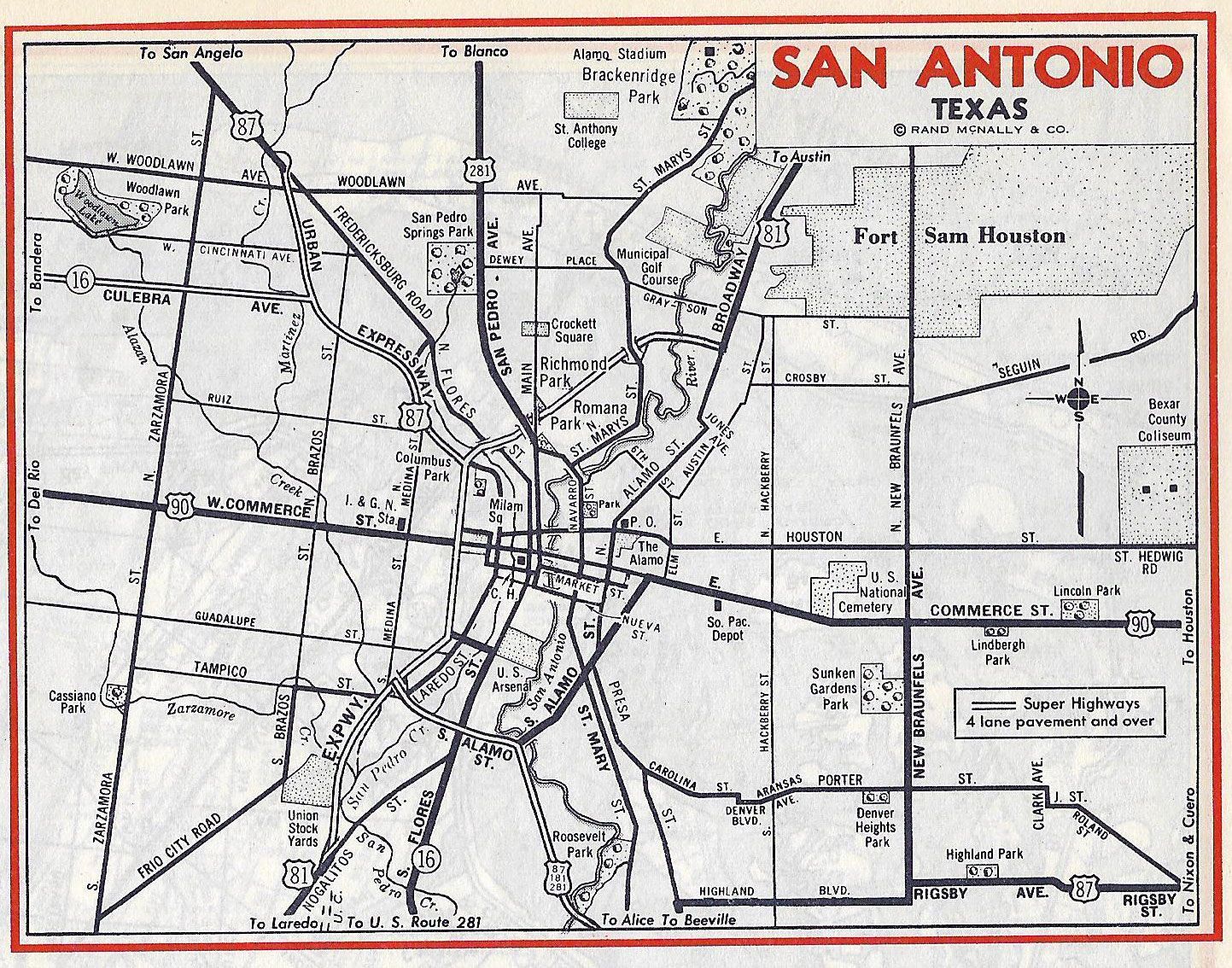 In 1949 a three-quarter mile section of San Antonio’s first urban freeway, US 87, now part of IH 10, opened between Martin Street and Woodlawn Avenue, quite a boost for the Handy Andy supermarket located there. As in the rest of the country, initial progress on this and other roads was greeted with enthusiasm. It would not be until the 1970s that people started pushing back against the construction of freeways which, up till then, bulldozed through existing communities if they were in the way with virtual impunity. A section of US 81, now IH 35, between Alamo Street and Broadway, was completed in 1956.