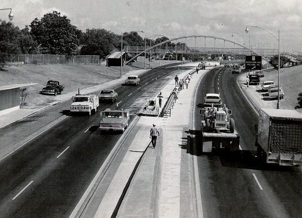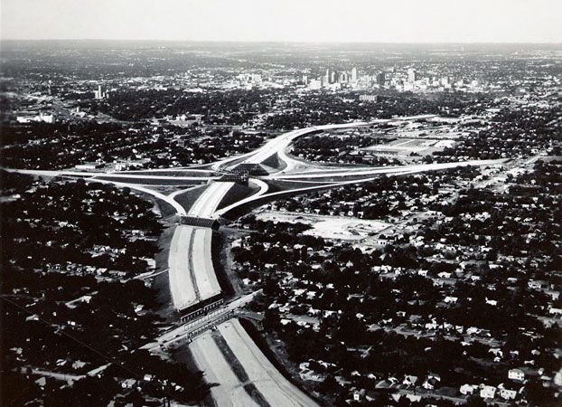 San Antonio's actions were happening across the country. In 1944 Congress passed the most important piece of road related legislation since the original Federal Road Act of 1916. Reauthorized every four years, the 1944 FRA created a fourth tier of roads in the USA, intercity expressways, also known as interstate highways. The other three were urban, farm to market and highways between towns. The new roads were to be multi-lane, limited access highways that would bypass most urban areas except major cities where they would literally be bulldozed through. Some 40,000 miles were proposed, to be funded 50/50 by the Federal and individual state governments. Most people give 1956 as the date for the beginning of the interstate system but this ignores the many tolled highways, such as the New Jersey Turnpike, created before this date. Only one tolled road was created in Texas, between Dallas and Fort Worth. This became a “Freeway” as opposed to a “Tollway,” following the 1956 Act during the Eisenhower administration in 1956, when the funding mechanism became 90% Federal and 10% state.