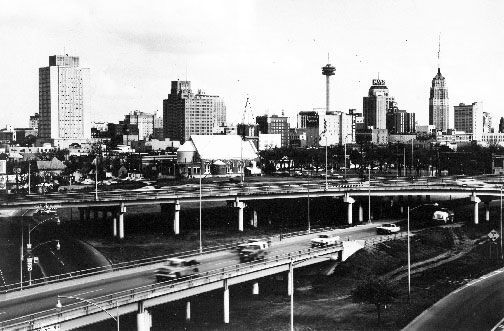 Upgrades and extensions of the northern section of old Loop 13 began in 1957 and the result was renamed Loop 410. At around fifty miles in circumference, it was completed in 1967. The city’s first mall, initially called Wonderland then Crossroads and now Wonderland again, opened at the intersection of IH 10 and Loop 410 in Balcones Heights in 1960, changing the shopping habits of the city and putting further strain on downtown retailers. By 1964 IH 10 stretched from the eastern edge of the city all the way to De Zavala in the north-west.