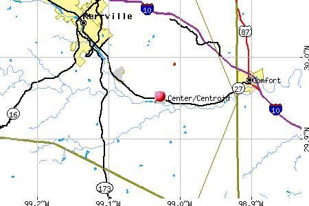 Modern Center Point is experiencing a quiet revival of sorts as more and more people head out from the cities looking for quieter communities in the cool of the Hill Country. Although the town remains unincorporated it has its own independent school district. The old general store is now an antique store. Its owner hopes to recreate the dramatic staircase to its upper level and possibly operate an eating establishment of some kind in the currently unoccupied space. Even with a population of 1,000 things are as slow as ever in Center Point. While this was once a handicap, it is now exactly what many wealthy retirees are looking for. The Guadalupe River burbles on, its bucolic aspects undisturbed.