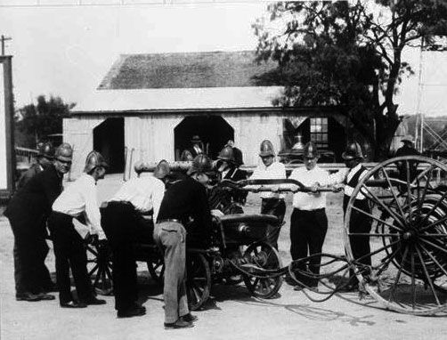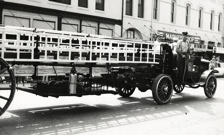 The first fire department in Seguin was formed in 1884 in a small shed just off Austin Street, the main business street in town. As was the case across the state, it was an all volunteer organization. By the 1920s the department had become professional and occupied an imposing fire house on the main square. It fielded all modern equipment which included an articulated ladder truck updated from horse power to a tractor built by the Wichita Falls Truck Company.