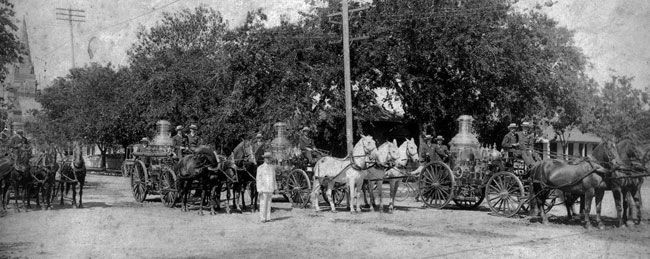 Few organizations need more specialized vehicles than the fire service. When the fire volunteer fire fighters, the Ben Milam Fire Company, was formed in San Antonio in 1854, they had little more than two wheeled carts with a few ladders and many buckets. The first horse drawn steam pumper arrived in 1868. By 1877 there were five different volunteer organizations. The Milam Steam Fire Company, #1, was on Market Street between Tyturri and Cochran Streets. The Alamo Fire Association, on Avenue C between Houston and Travis, was Company #2. As well as two colored fire companies there was also the Turner Hook and Ladder Company. This took its name from the Turn Verein athletic club. The fire company was just one of the many public organizations that sprang from the civic minded German community.