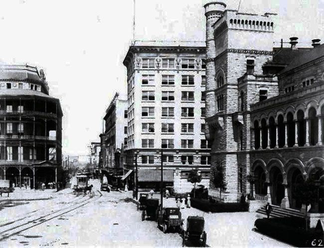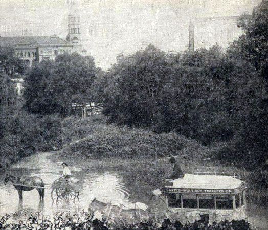 Mule drawn double decker omnibuses ply the streets of San Antonio. It takes two hours to go from the Menger Hotel to San Pedro Park.
