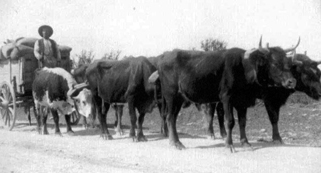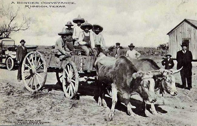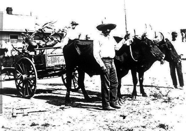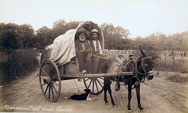 Anglo settlers bring or import higher quality wagons from the north overtaking the traditional solid wheeled ox-drawn cartas used by both Spanish and Mexican freighters and farmers. They also bring in mules and horses to pull them.