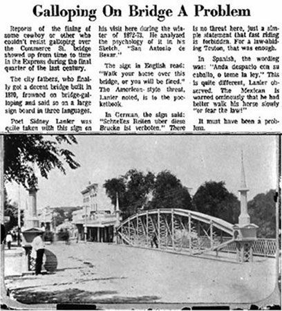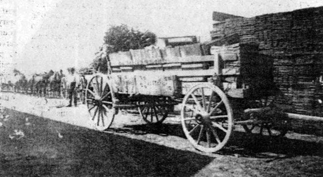 San Antonio's first iron bridge is delivered from Indianola in specifically built long wagons.