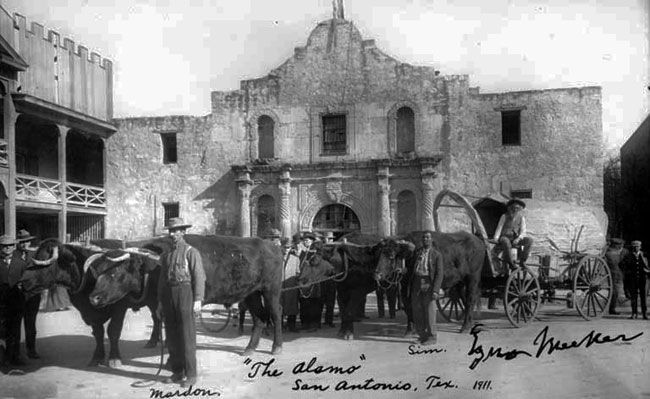 Until Texas became part of the USA in 1845, travel to and from San Antonio was conducted in large carts, with two solid wooden wheels. Although these were most often individually owned they traveled together in large train of up to thirty wagons, each one pulled by up to ten oxen. The main crossing over the Rio Grande was near modern day Eagle Pass. San Antonio was almost exactly half way to Nacogdoches at the border of Louisiana although by 1836, when Texas gained its independence from Mexico, that city had been abandoned and there were only around two hundred people living east of San Antonio in the entire state.