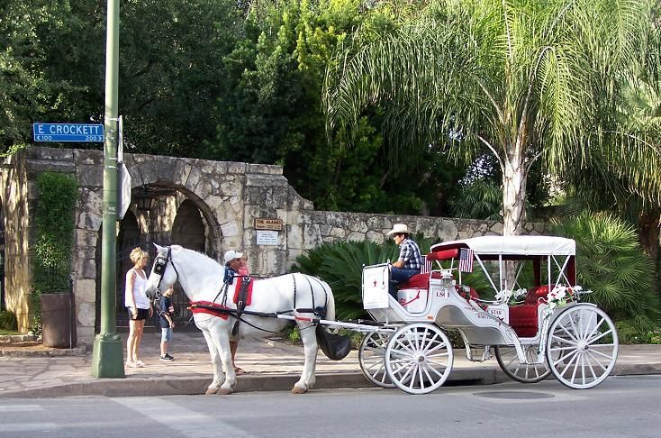 Within San Antonio, you cannot go to many parades where you won't see some fine horses and carriages. On a day to day basis, the most visible horses are those stationed near the Alamo, waiting to take tourists in delightfully painted and decorated carriages around the history laden streets of downtown San Antonio. They are the last daily reminder of how full of the sounds and smells of horses and mules this city used to be.