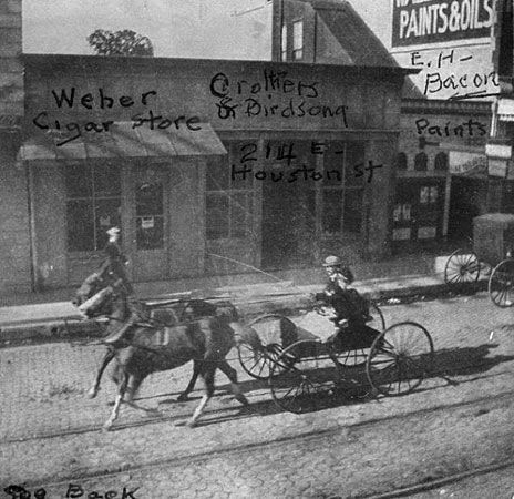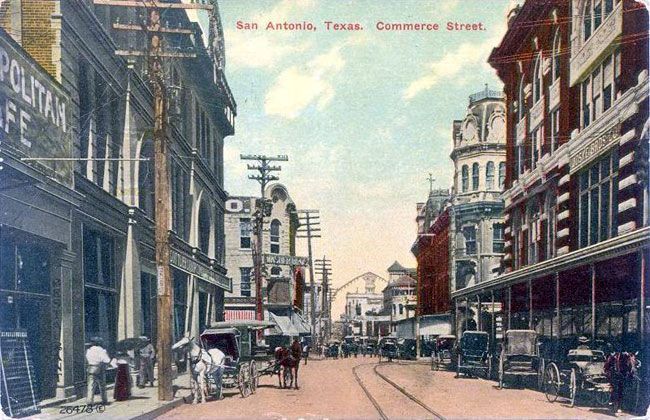 As the population grew and new communities developed, San Antonio became a huge trading center. Commerce Street was thronged with wagon trains arriving and departing. The historic plazas became grazing and marshalling areas for hundreds of oxen and mules. Warehouses up and down the street accepted deliveries and saw to their further distribution. Merchants set up shop near this area and the city began to radiate out from one of the busiest trade centers in the state. Blacksmiths, saddlers, livery services, wagon manufacturers and outfitters added their distinct aromas to what must have been an already ripe ocean of odors.
