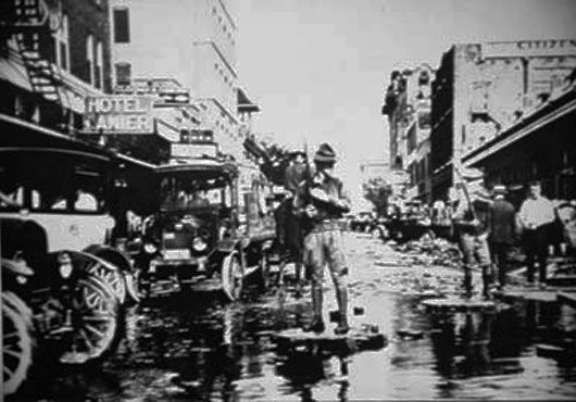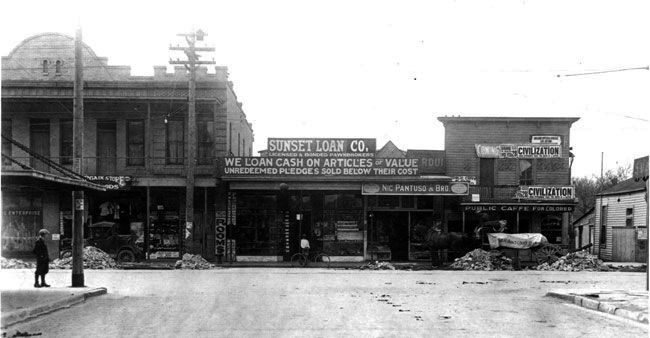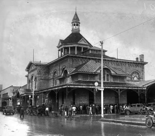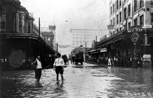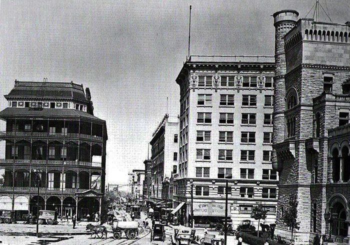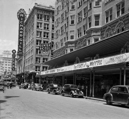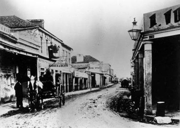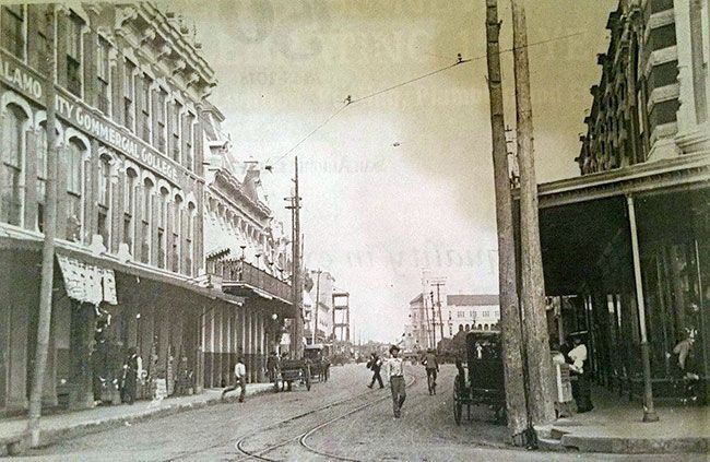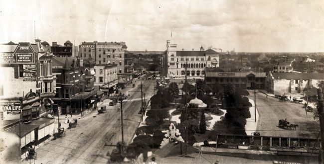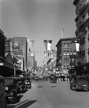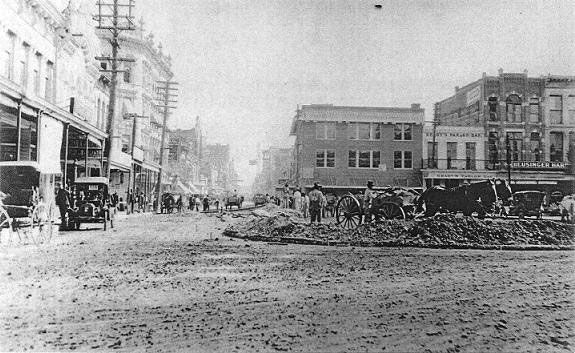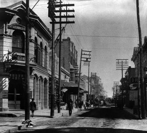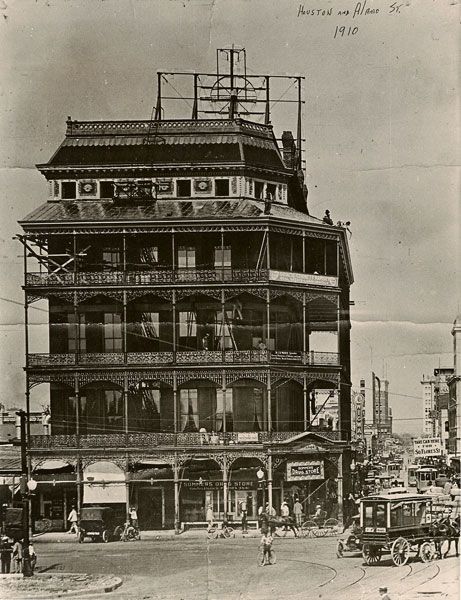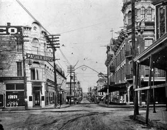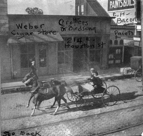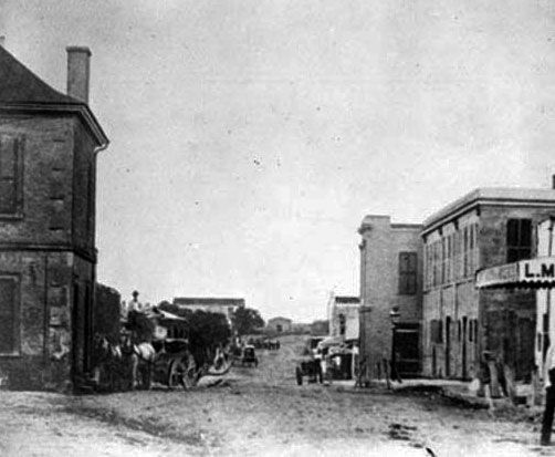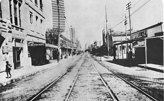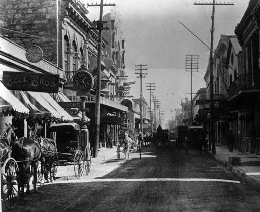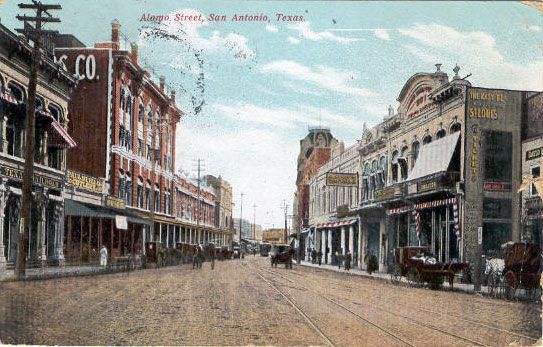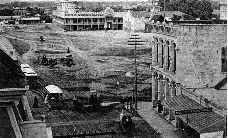 Several block of Market Street on either side of the intersection with St. Marys are crudely asphalted. Along with a similar project in Houston, these are the first paved roads in Texas.