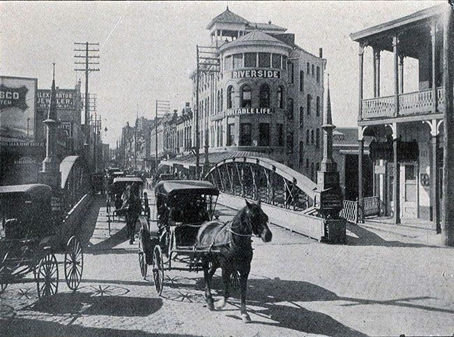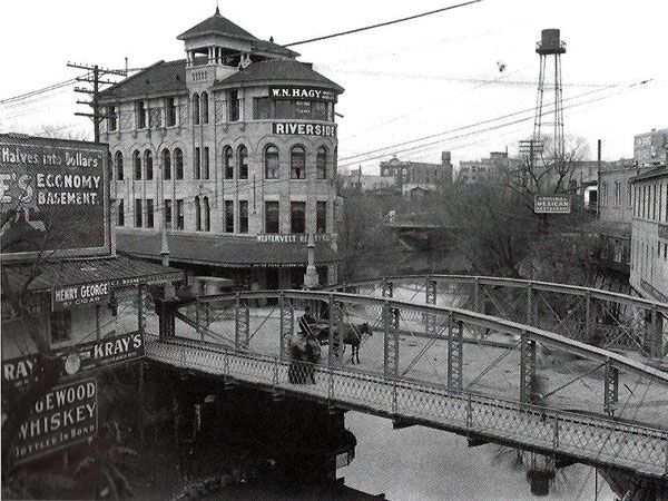 First heavy duty iron bridge installed in San Antonio creating Houston Street in the process