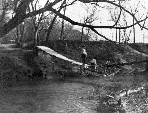 Heavy duty bridge over the river in San Antonio at Commerce Street replaced with a second wooden structure