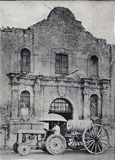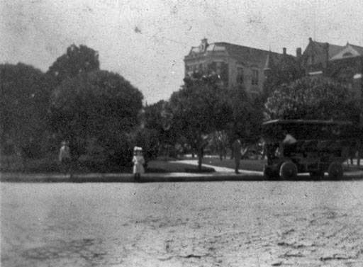 By 1900 there were some twenty-four bridges over the still meandering San Antonio River. There were around eight thousand horseless carriages in America, but the pace of production was increasing rapidly. The first horseless carriage on record in San Antonio was an electric, delivered to the showrooms of the Staacke Brothers on Commerce Street. (It's most likely that Montgomery Ward brought in an electric vehicle demonstrator in 1897, but absolute confirmation has not be be established. The first gasoline powered automobile appeared in San Antonio in 1901. The San Antonio Automobile Club was formed in 1902 with thirteen charter members. That same year, Emil Seeliger of Lockhart acquired a car. The first car drove through Uvalde in 1904 and four were acquired by local residents the same year. Dr. C. Jones brought the first automobile to Comfort, a two cylinder Maxwell, in 1906.
