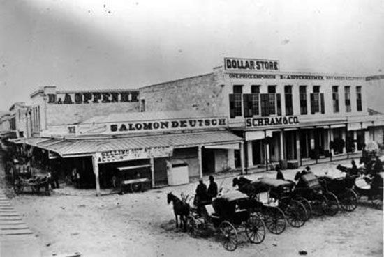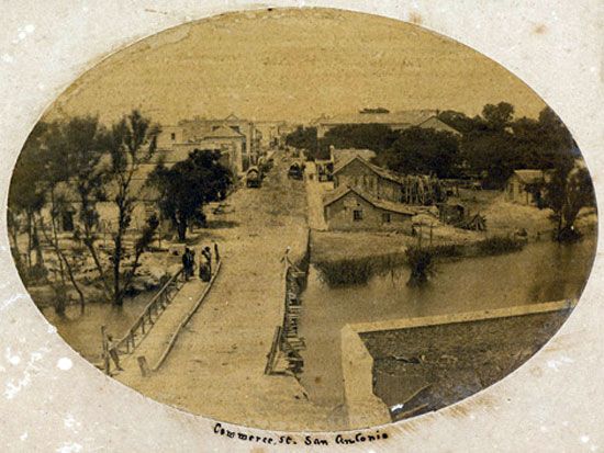 Three horse carriage manufacturers operate in San Antonio. Work to replace the wooden bridge over the river at Commerce Street with an iron bridge is begun.