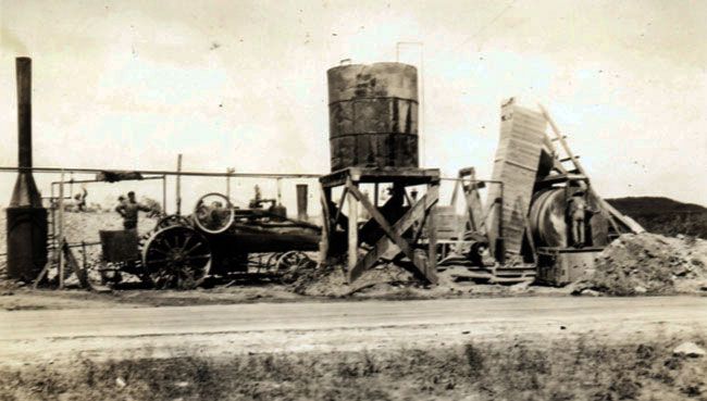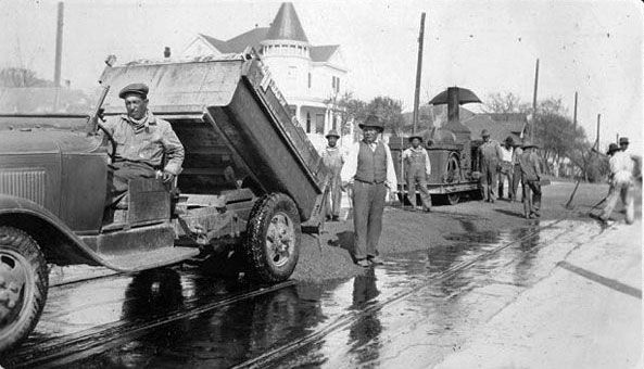 In 1898 a small section of Market Street on either side of St. Mary's Street in San Antonio became one of the first streets in Texas to be given a top layer of asphalt. A similar experiment was undertaken in downtown Houston. The material came from the only naturally occurring asphalt mine in Texas. Located near Uvalde, the operation ran until 1935. (Today asphalt is a manufactured blend of oil and crushed limestone.) The natural asphalt was applied quite crudely for several blocks by the Parker-Washington contracting company. Modern methods are quite more advanced than this first attempt to see how the material would fare in a busy intersection section of a major Texas city. In fact the original application stayed smooth and impervious until 1910 when it was replaced during a $220,000.00 street widening project.