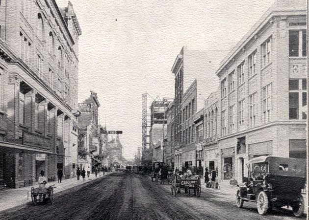 1st horseless carriages, battery powered Studebakers, arrive at the Staacke Bros. showroom on Commerce Street.