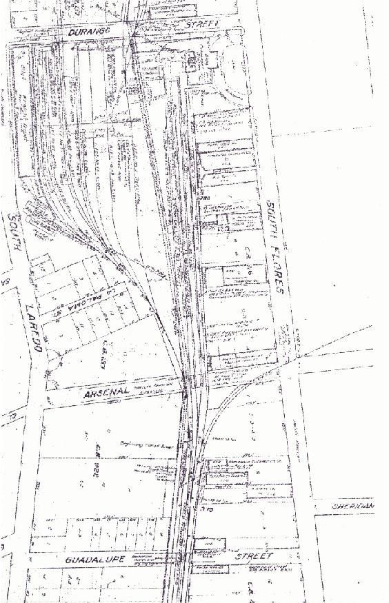 It was also at this time that the Arsenal, just south of downtown San Antonio, was greatly expanded. Coincidentally the construction of tracks into the new Missouri Kansas & Texas station very nearby at the corner of Flores and Durango facilitated the movement of material in and out of the facility, though a spur line from the San Antonio & Aransas Pass line had existed for some time prior to this. At this time the facility was much larger than the remaining main buildings currently in use by regional Texas grocery giant, H.E.B. Durango actually stopped at Flores and the acreage occupied by the military facility was much greater than today. As the city expanded around the Arsenal, just about any kind of military maneuvers and live fire training became absolutely impossible to conduct there. It was also determined that the storage of high quantities of potentially volatile military ordinance in the middle of a growing city was inadvisable. The army decided to move the munitions to Camp Stanley as its rail connections were already well established. However it would take quite some time for correct storage facilities to be completed.