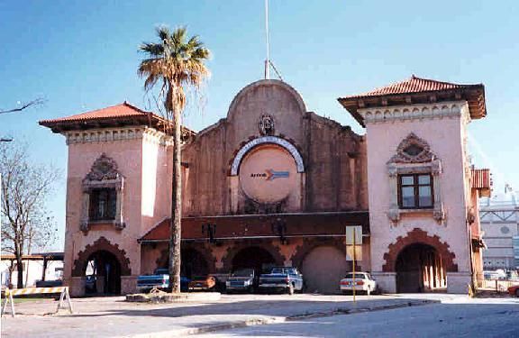 In 1995, with the station in poor condition, including the very poorly executed installation of air-conditioning, which involved the construction of a false front interior wall and the destruction of the huge iconic SP "tracks-into-the setting-sun" stained glass window, AMTRAK was asked to move out by the historic structures new owners, VIA Transit, the county owned bus company, and build a depot more suitable for its more humble requirements. This new depot built with tasteful reference to the old station next door, continues to serve the city. In the meantime, "Sunset Station" itself was completely renovated, at great expense and with remarkable attention to detail, and re-opened as an entertainment complex. That this has not fared as well as originally hoped is no fault of its backers, but more because of its location on the wrong side of the freeway and on edge of the east side where many people simply fear to go.