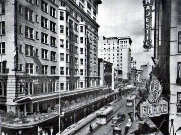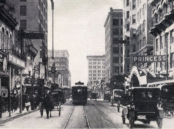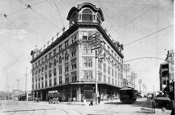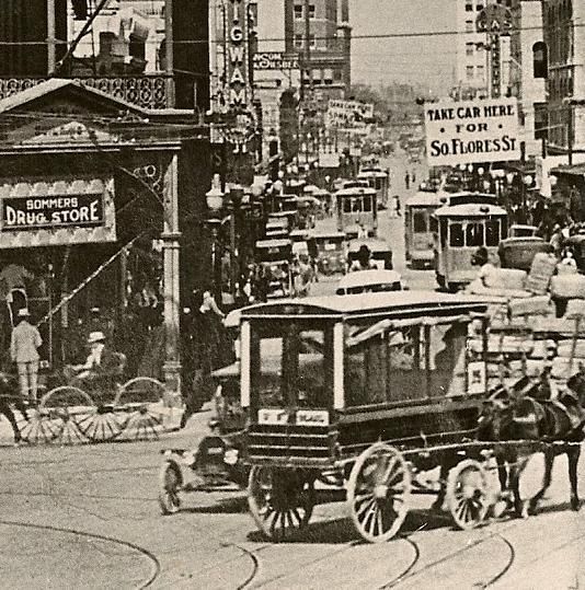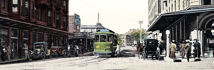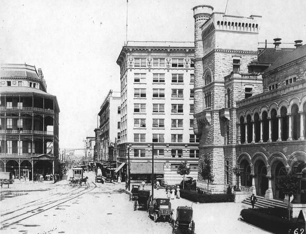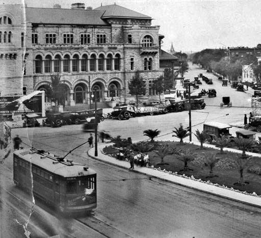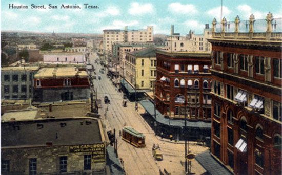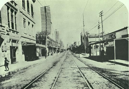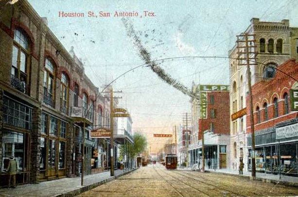 Denied access to Commerce Street because it was too narrow and crowded, all streetcars in the expanding system are routed along Houston Street which rapidly overtakes Commerce as the commercial and business hub of San Antonio.